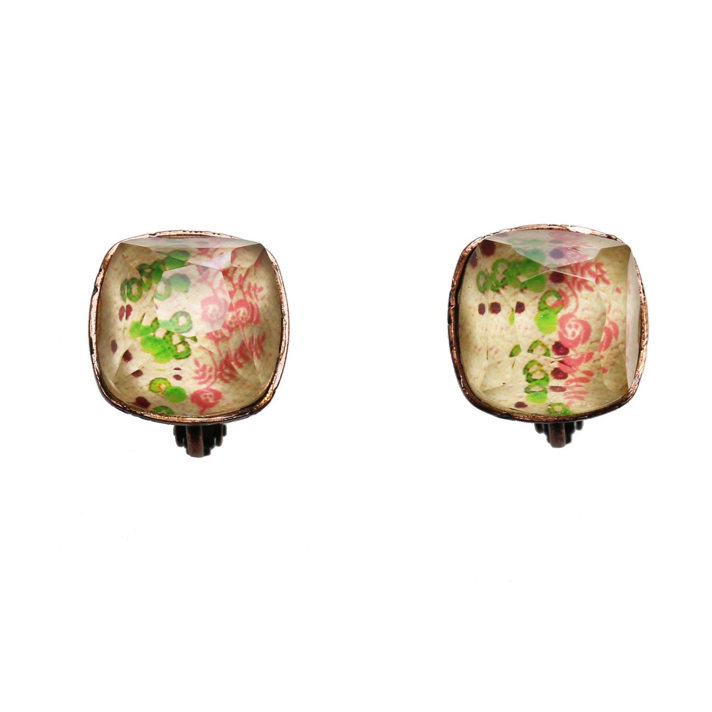 It is a pair of earrings using the square resin parts of "Rose Tree Series" (Beige). It is a fashionable design that attracts eyes with Japanese-style colors.