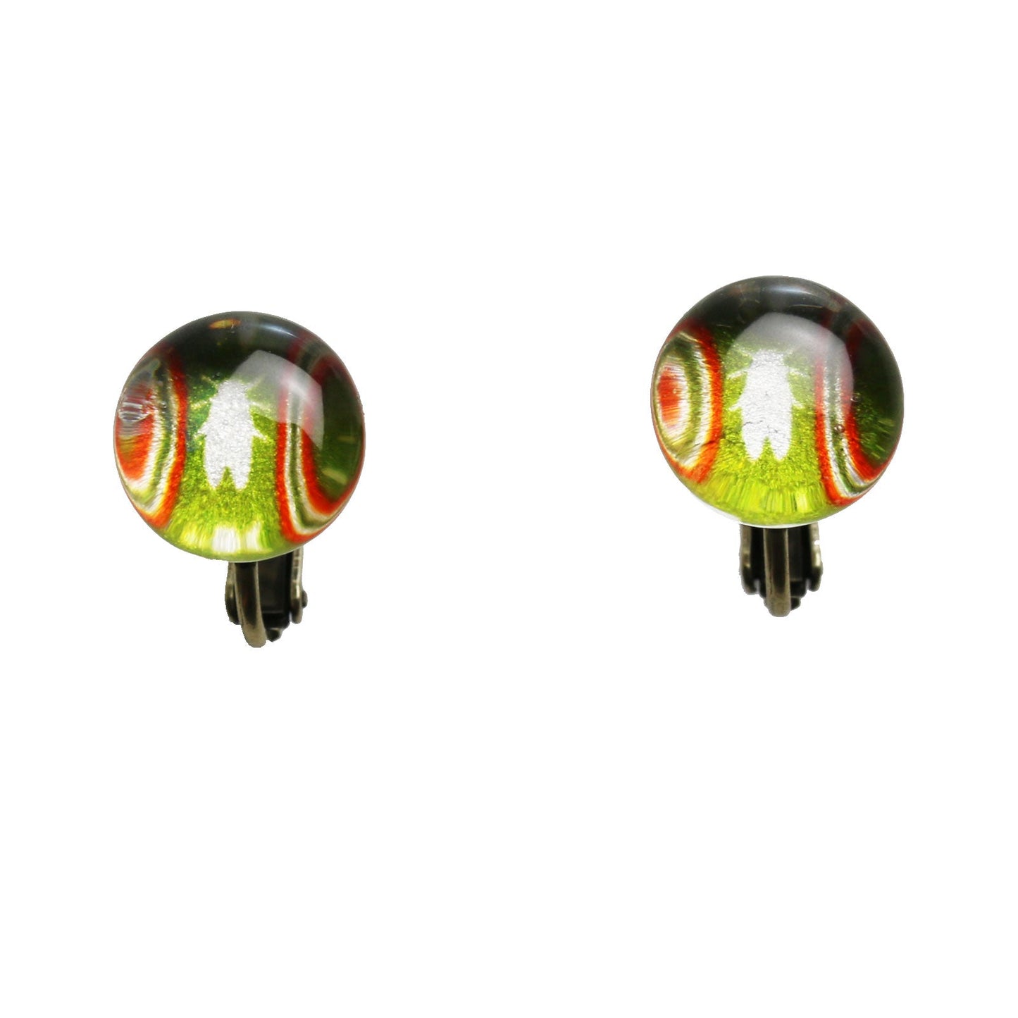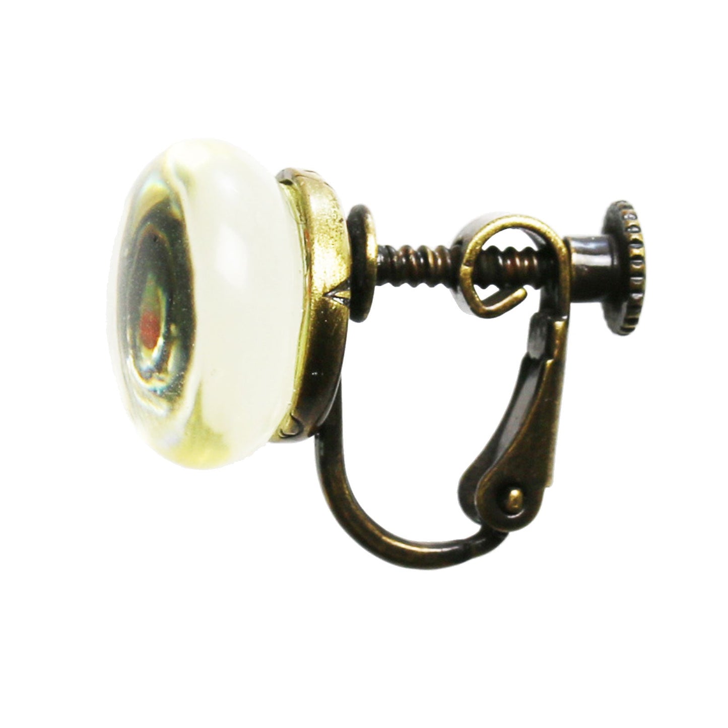 It is an earring using round plastic parts of "Cicada Series". It is fashionable design with cute shape that fell into love, green with bottom light is eye-catching. There is no hanging decoration, so you can simply wear it cleanly. Resin parts and metal parts are handmade.