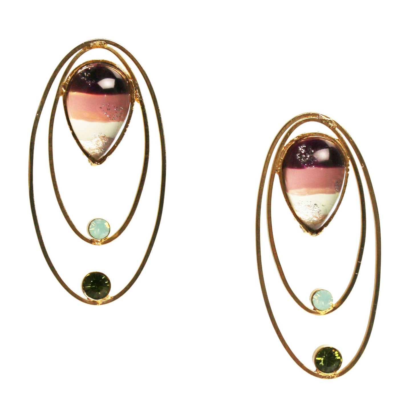 It is a pair of earring using resin parts of "Rainbow Series" (Purple). It is a distinctive shape with two hoops. Pull the eye in a unique design that green and aurora color of rhinestone shines. To the gorgeous accent of the ear.