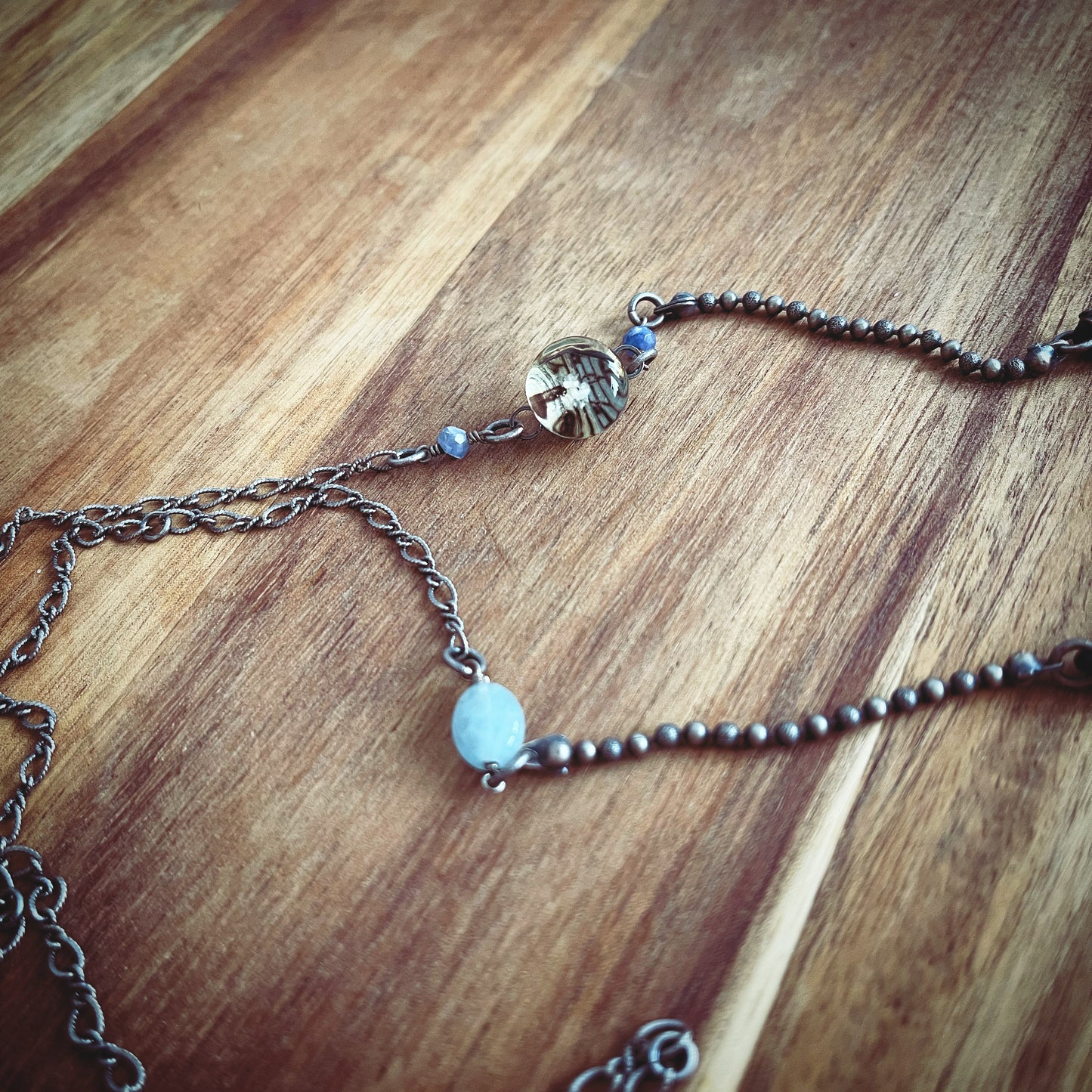 Chain Bolo Tie Red Light Blue Garnet Gold