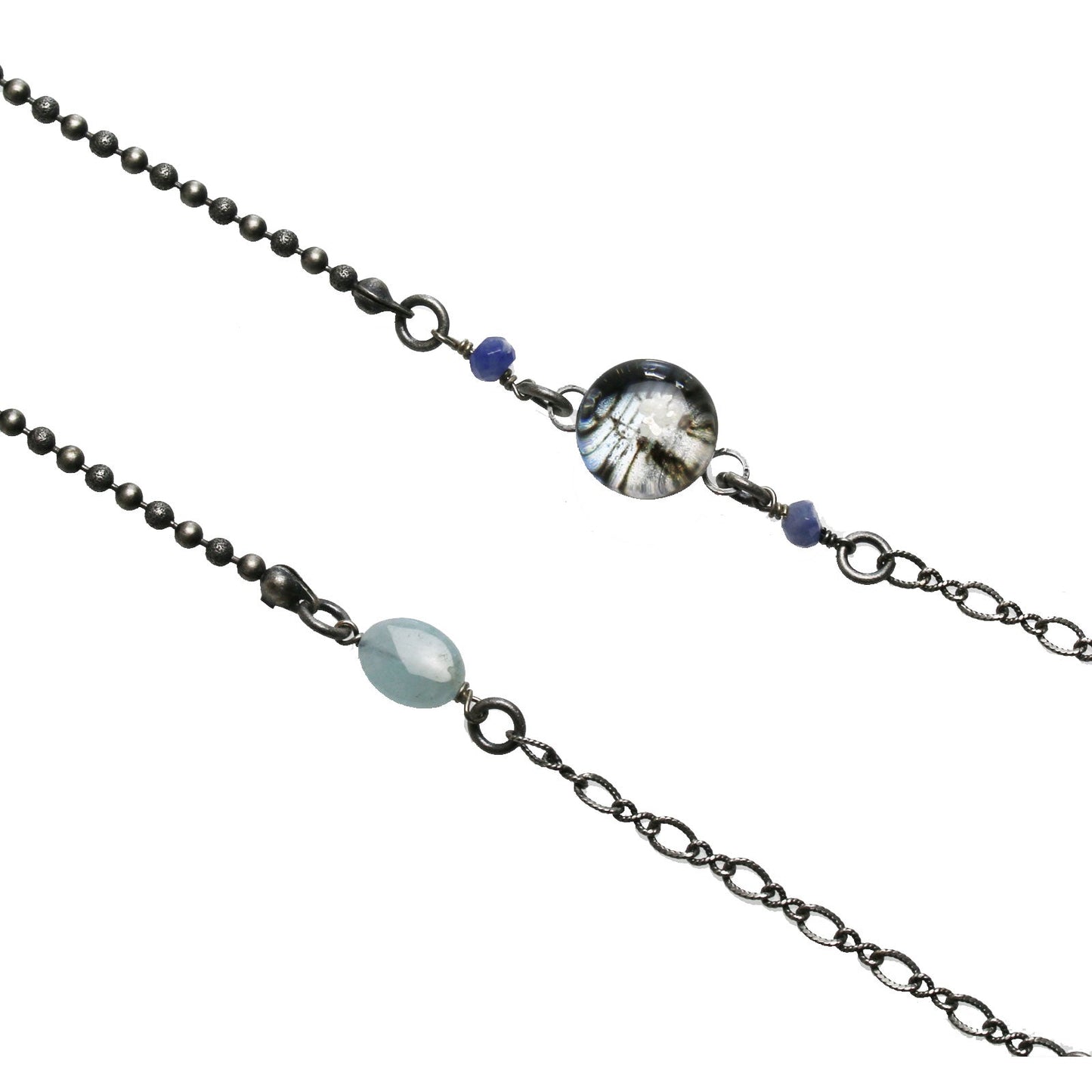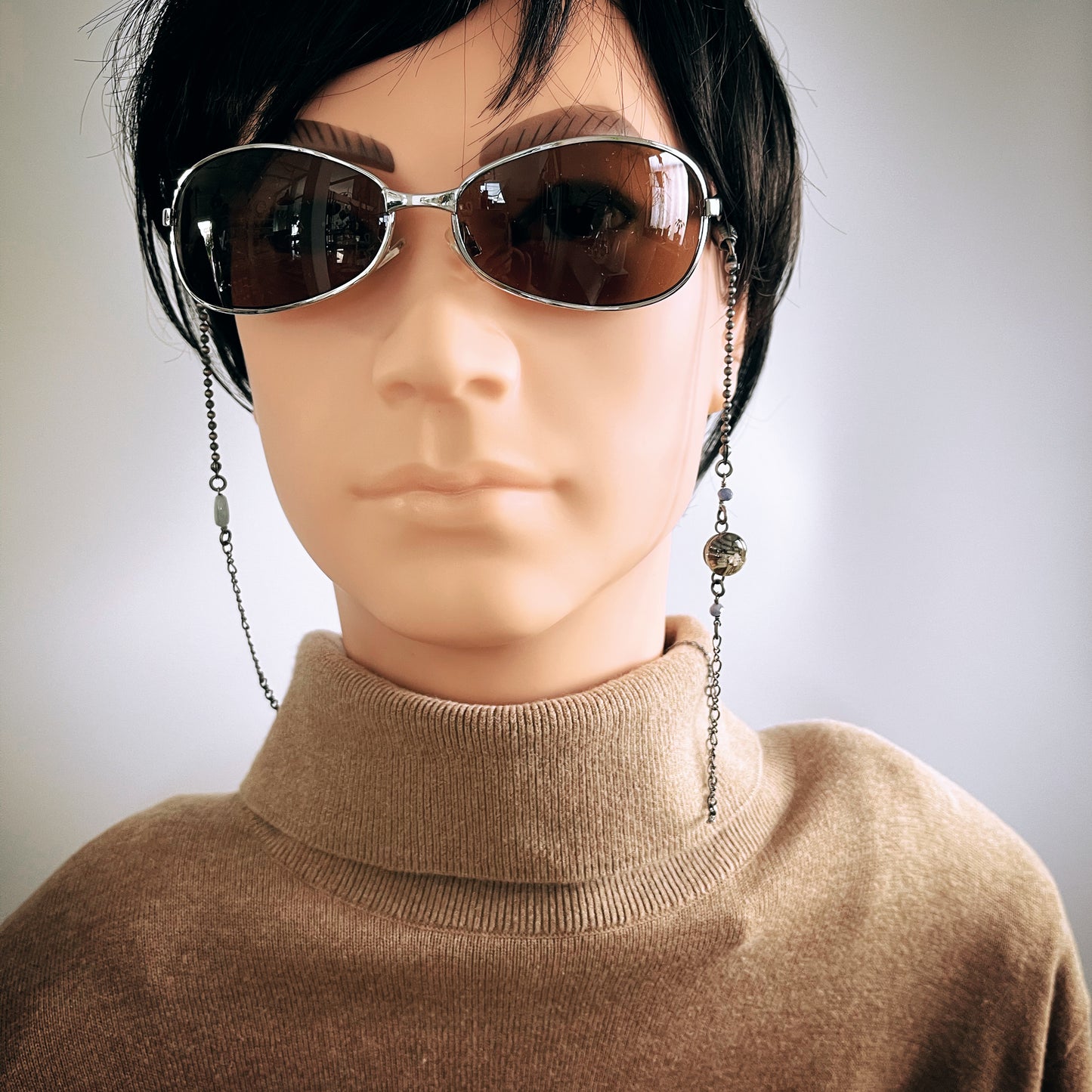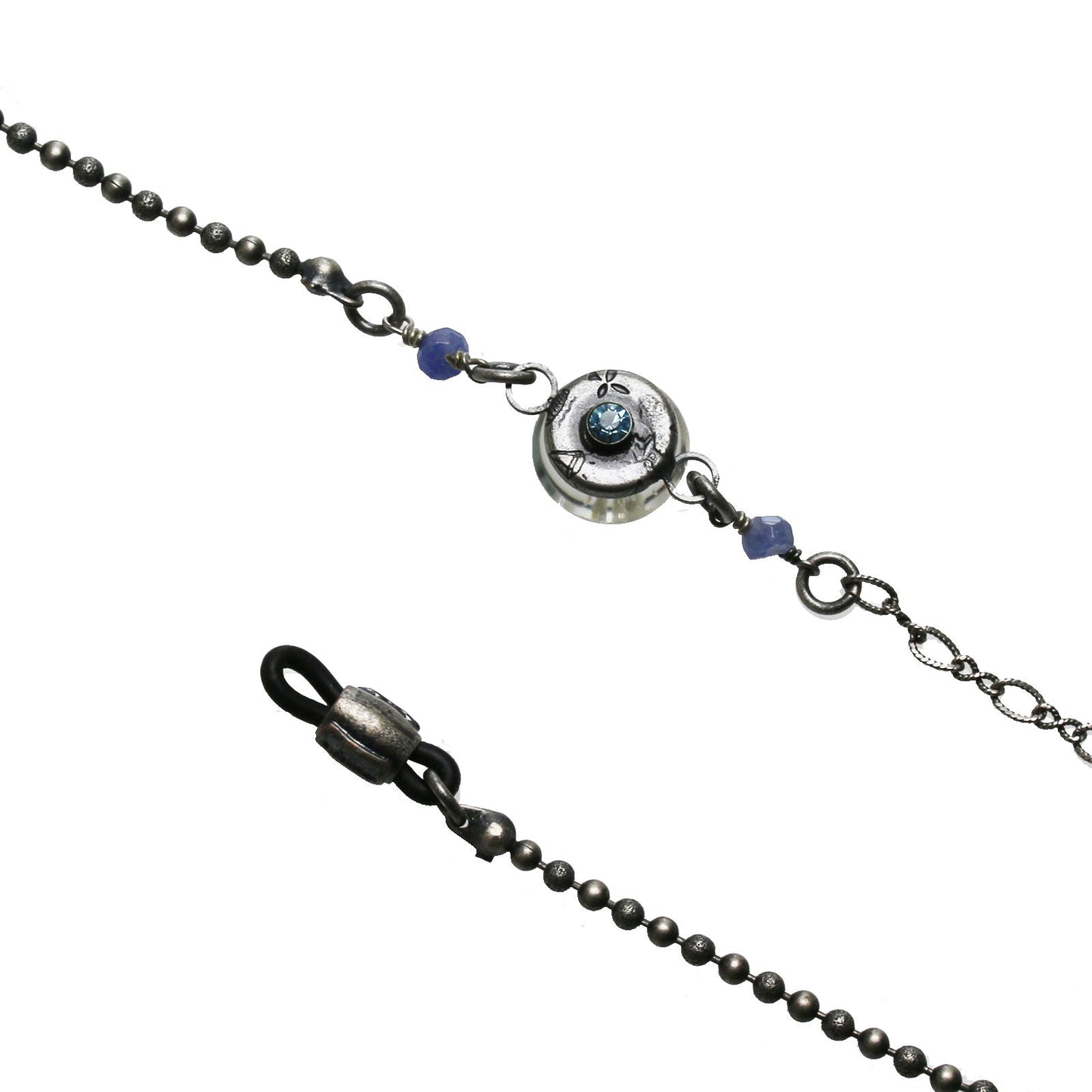 It is an eyeglass holder using the resin part of "Musical Note Series" (Blue). It is easy to coordinate with chic shades. It is a popular series for gifts. Because it shakes at your ear, it makes you feel like wearing a pair of earrings. We combined aquamarine and sodalite to match the color of the resin. This product is made intentionally so that silver or gold powder is put in the resin as a design and the musical note is not seen well. Because I cut the part of the note randomly, it may become a slightly different hue from the photograph.