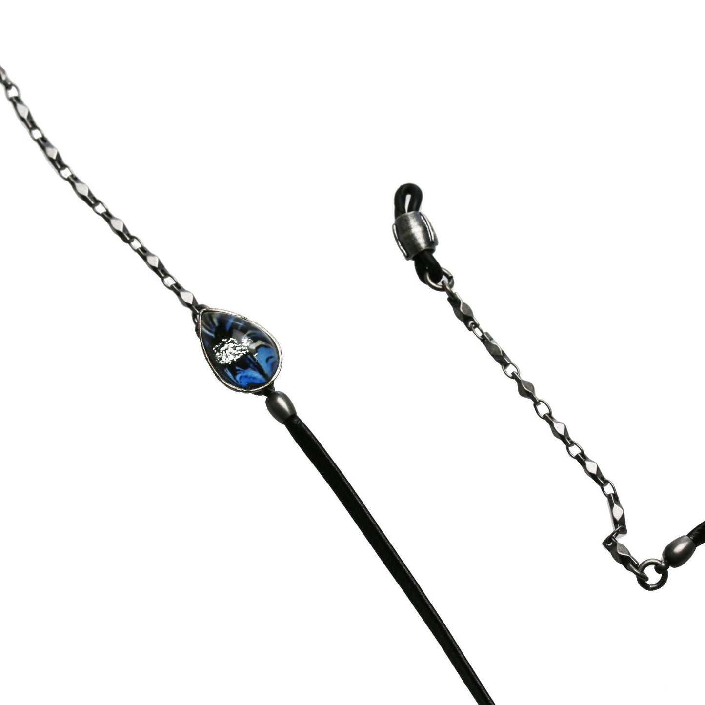 It is an eyeglass chain using resin parts of "Marble Series" (Blue). It is easy to coordinate with chic shades. It is light and easy to wear because it uses a strap. It looks like the decorative part is swinging at the ear and playing earrings. It is unisex.