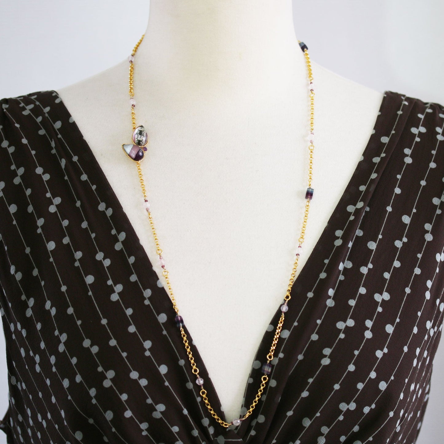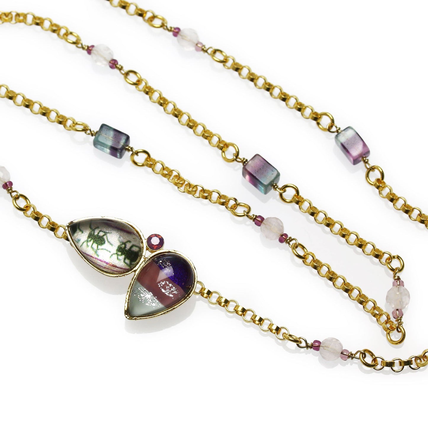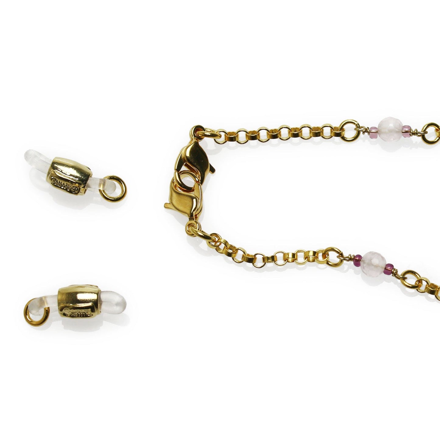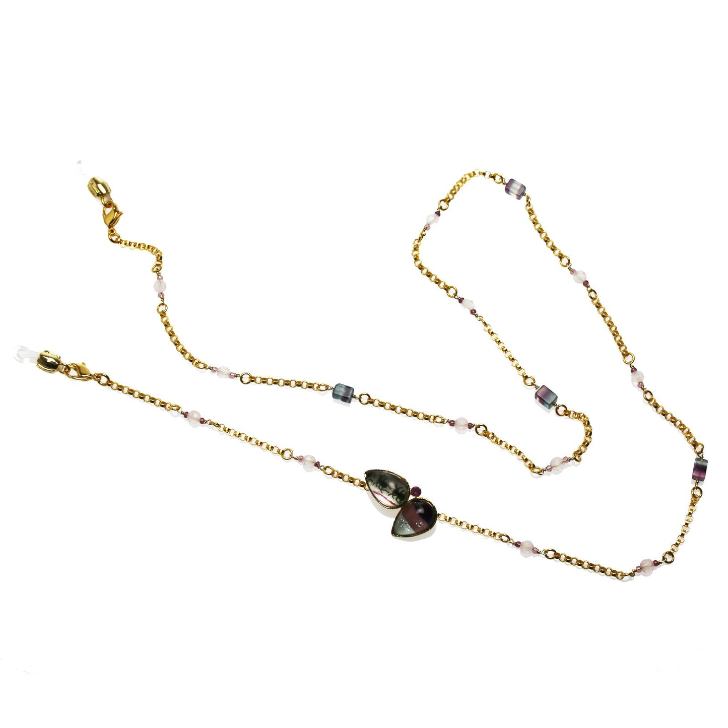 It is an eyeglass chain necklace that uses a resin part of the "Rainbow Series (Purple)," "Tiger Beetle Series". Flow light, rose quartz was combined according to the color of resin. You can also use it as a necklace by connecting the clasp part. Since it is a gorgeous hue, please take it to accent of simple attire. It is recommended not only to hang glasses but also as a unique fashionable item. It is also popular for gifts.