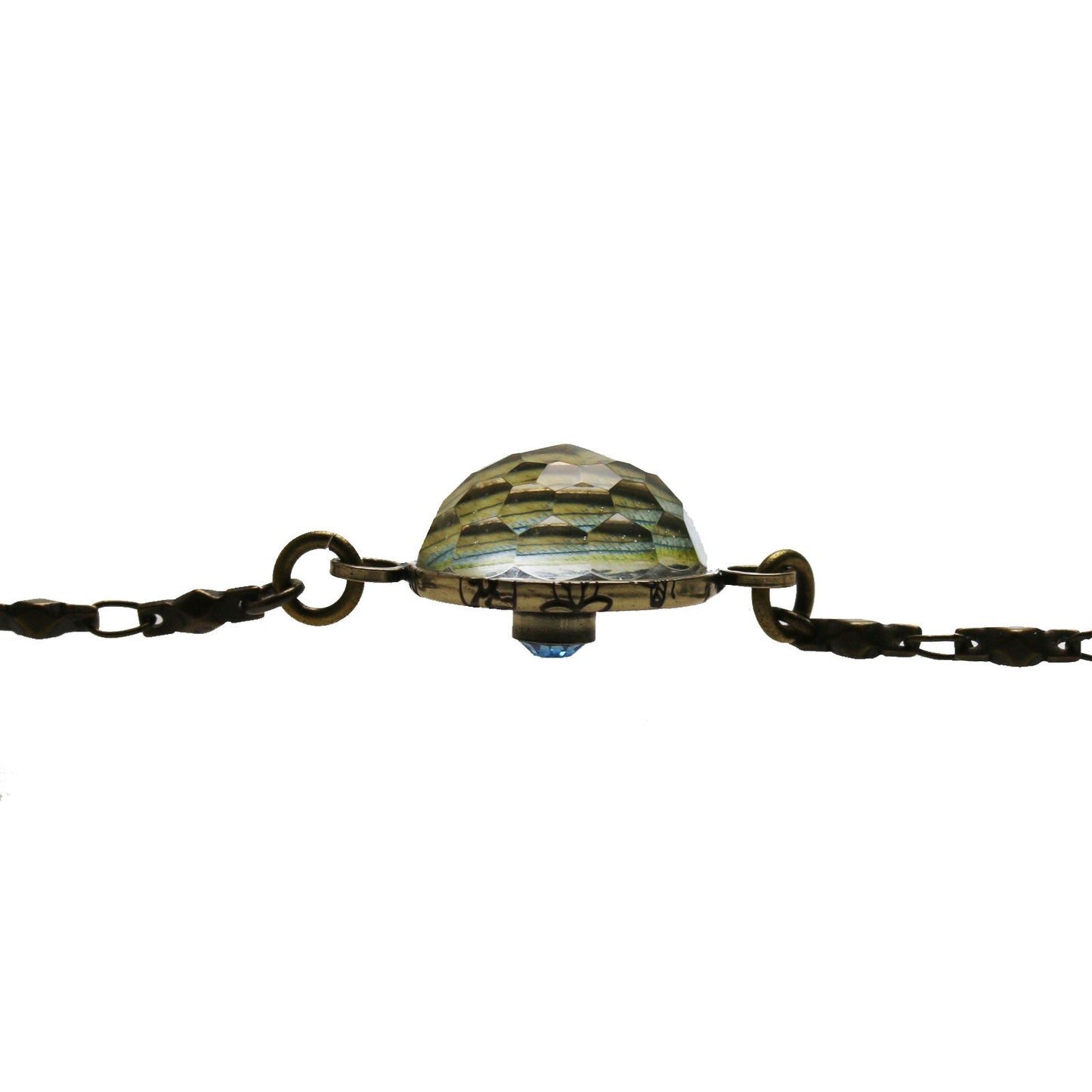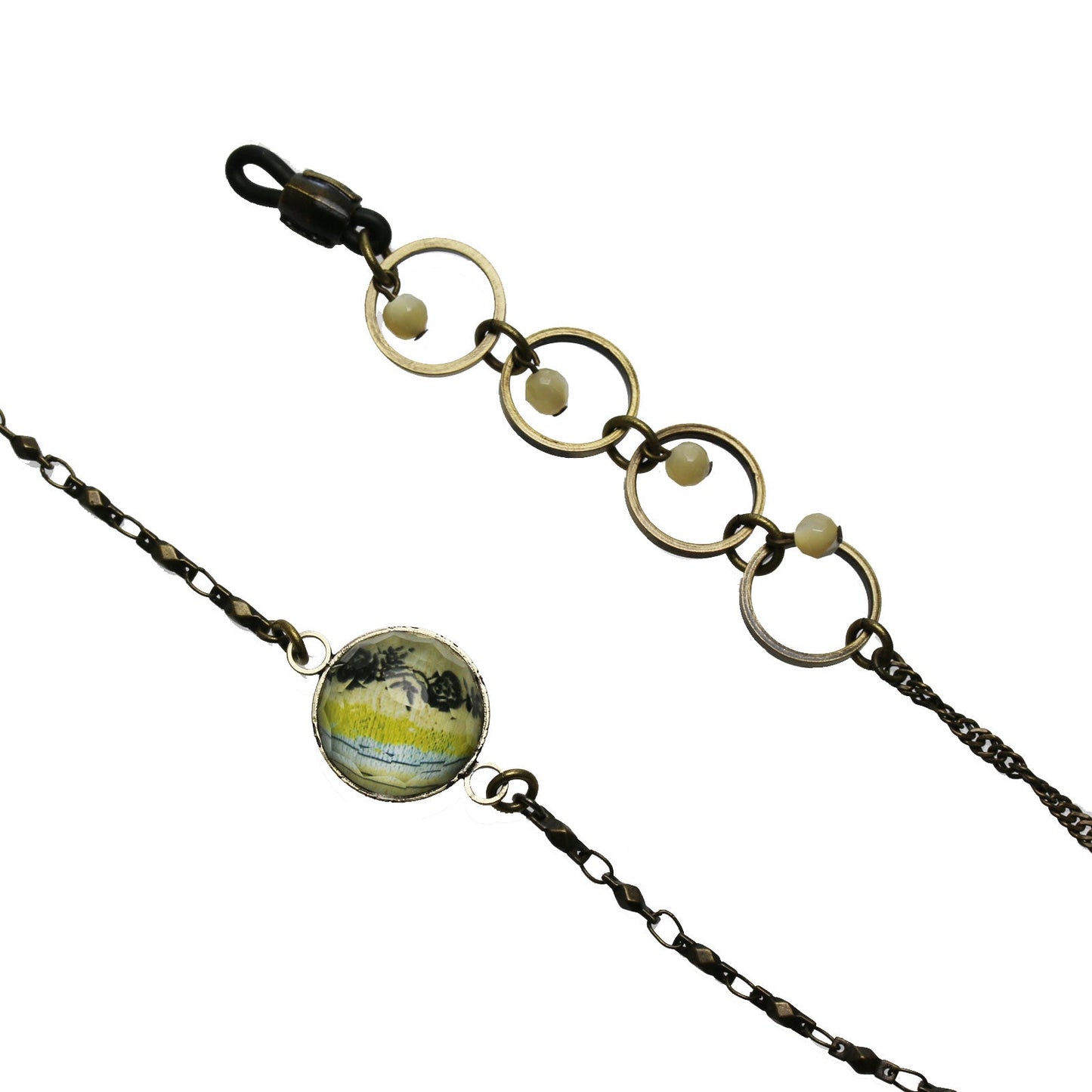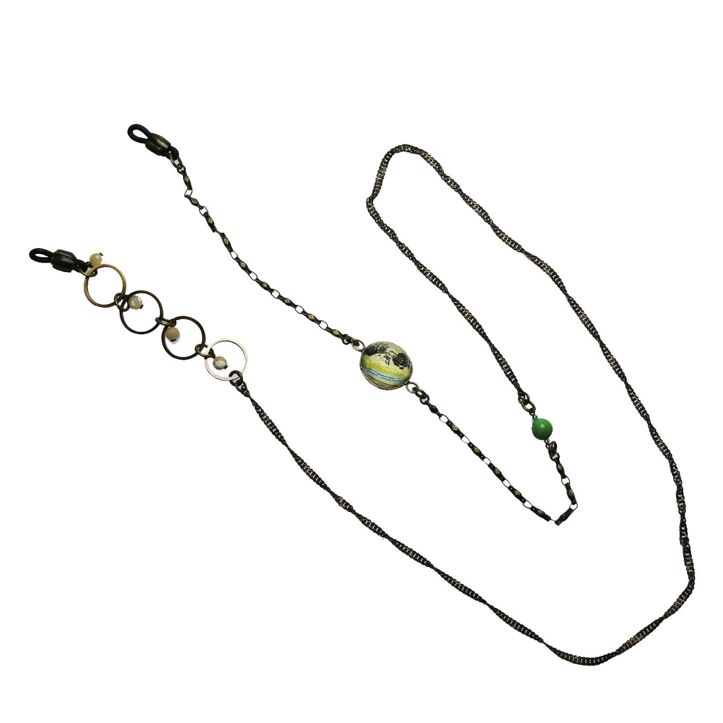 It is an asymmetrical decoration eyeglass chain using round resin parts of "New Rose Tree Series" (Yellow-Green). Turquoise according to the color of resin, gorgeous design swinging mother of pearl. Please add a new style of eyeglasses style.