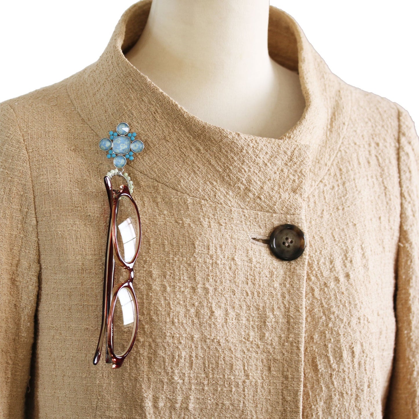 This product can be used as a brooch, necklace, and glasses holder, and best of all, it's lovely.