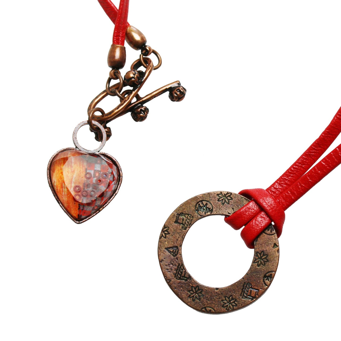 Eyeglass Holder Heart Orange Red Leather