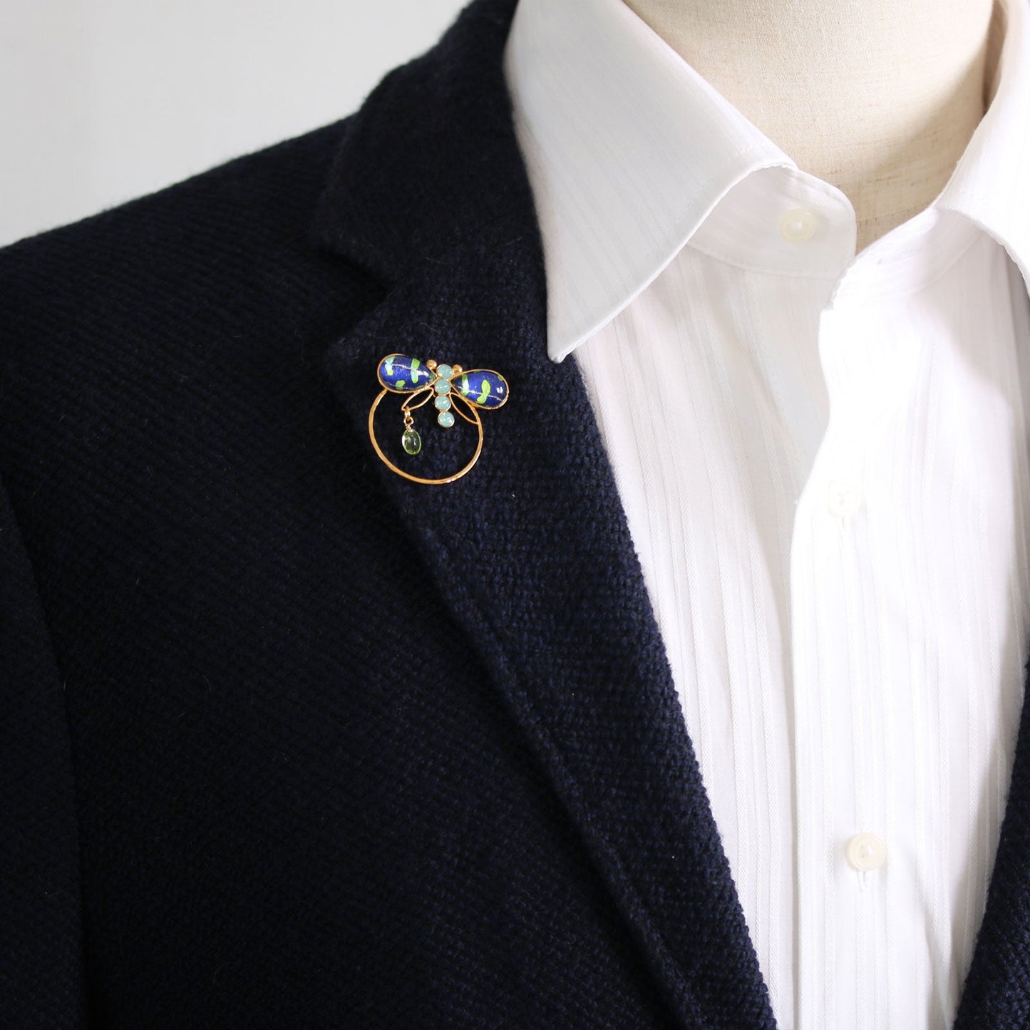 Eyeglasse Holder Pin Brooch Dragonfly Blue Peridot