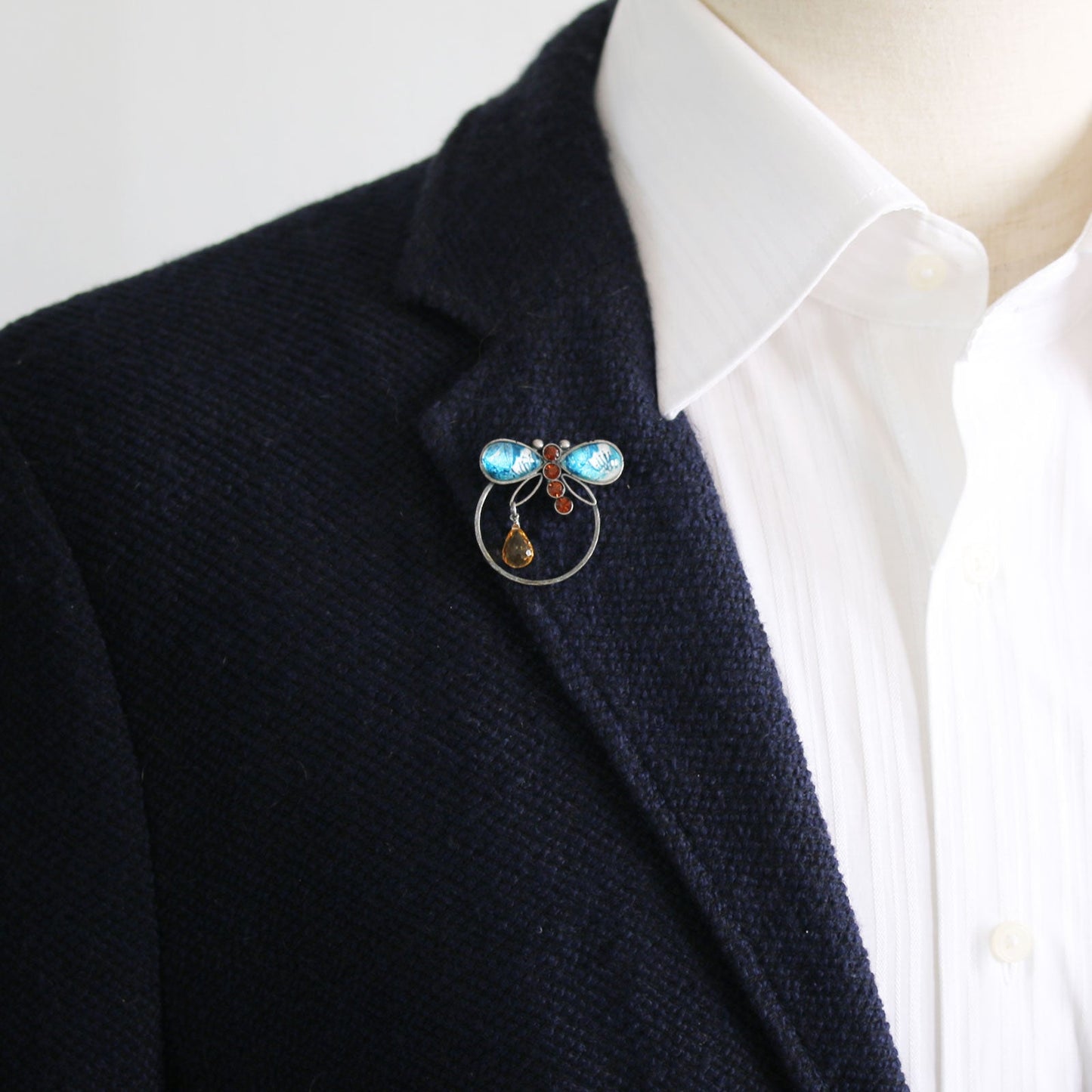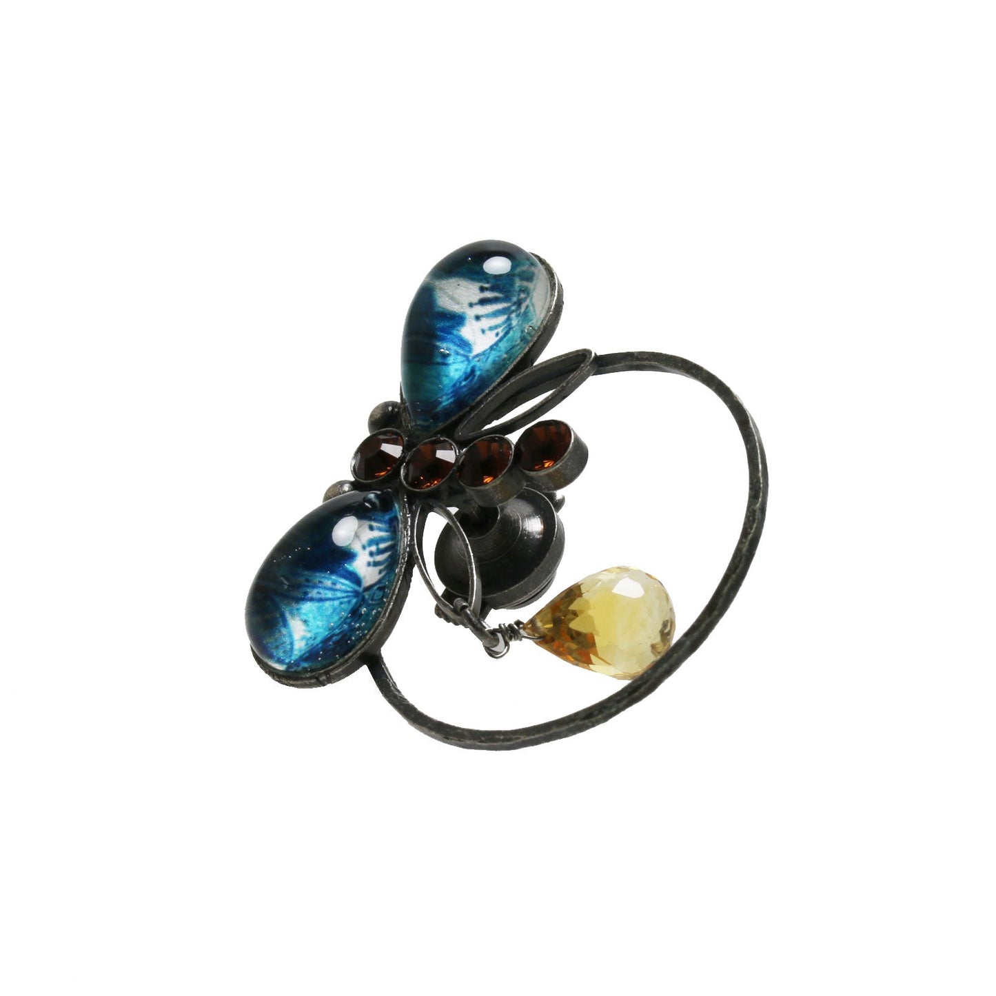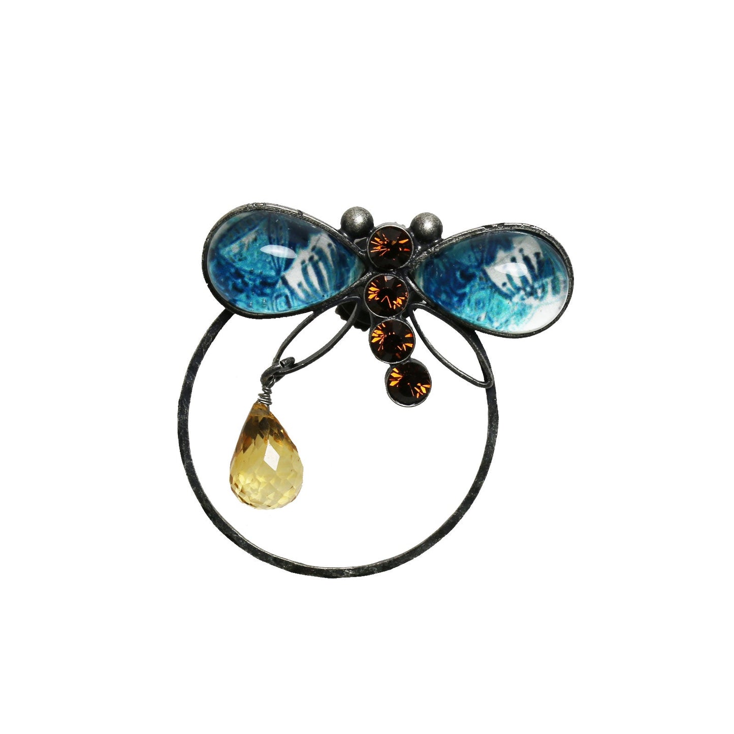 Eyeglass Holder Pin Brooch Dragonfly Lily Blue Citrine