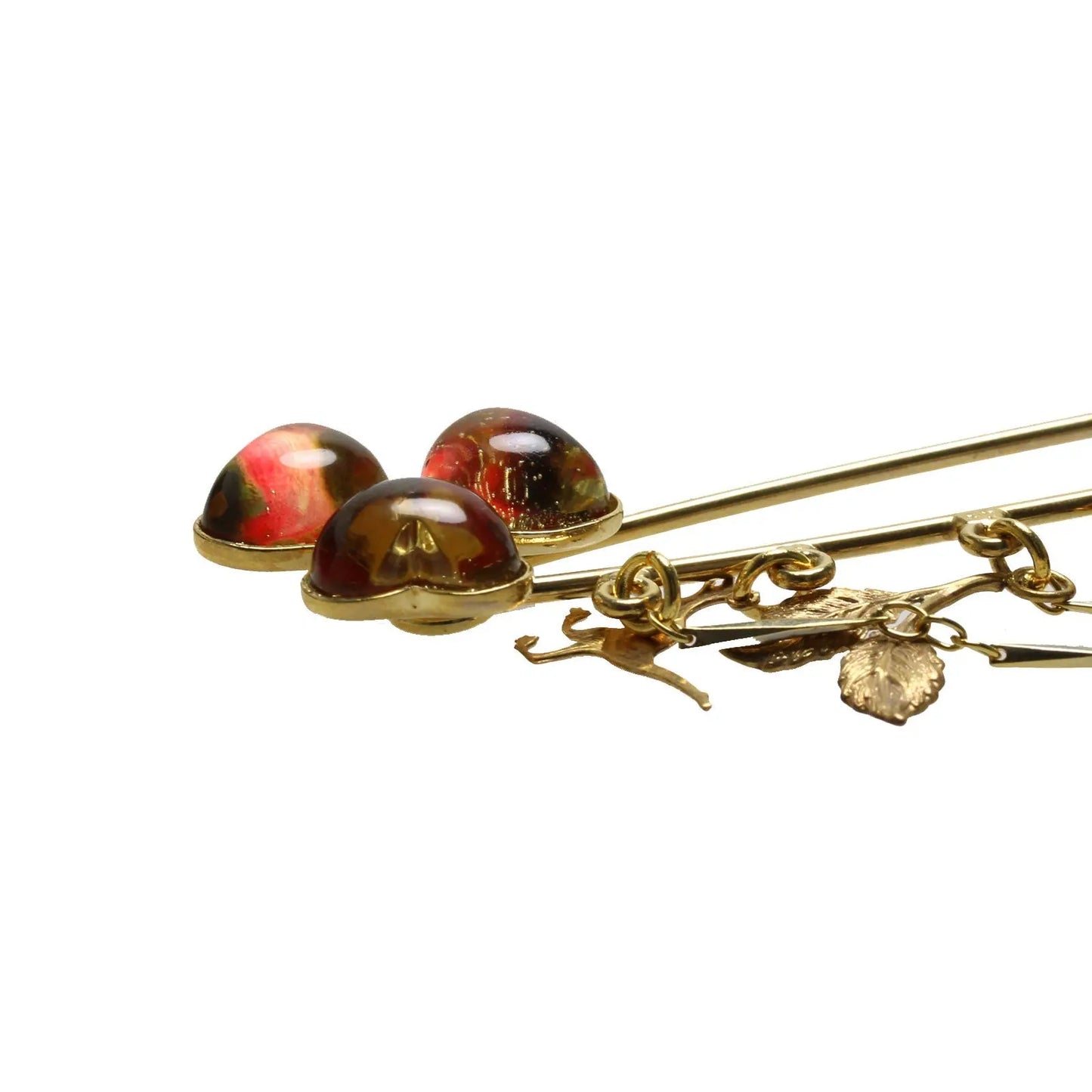 It is a fancy safety pin using the resin parts from the "Amazon Series" (Red).The flower shape is eye-catching. It is convenient to fasten your rough scarves or shawls. The resin parts and metal parts are handmade. It is a good accessory as a gift.