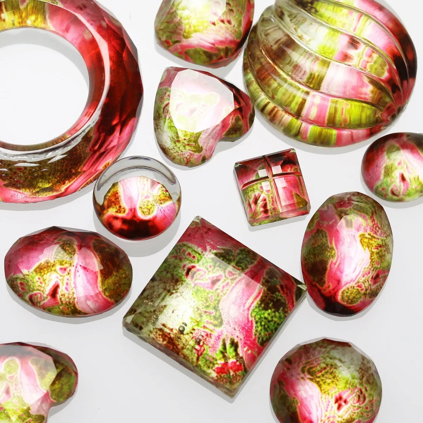 Because it is cut, it sparkles beautifully depending on the angle and light. The green rubber makes it look like a hydrangea, which is nice. I was worried about it, but I'm glad I bought it. Thank you very much.