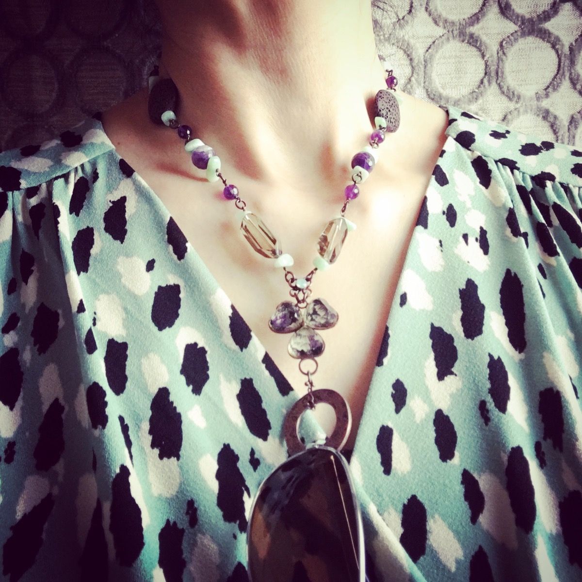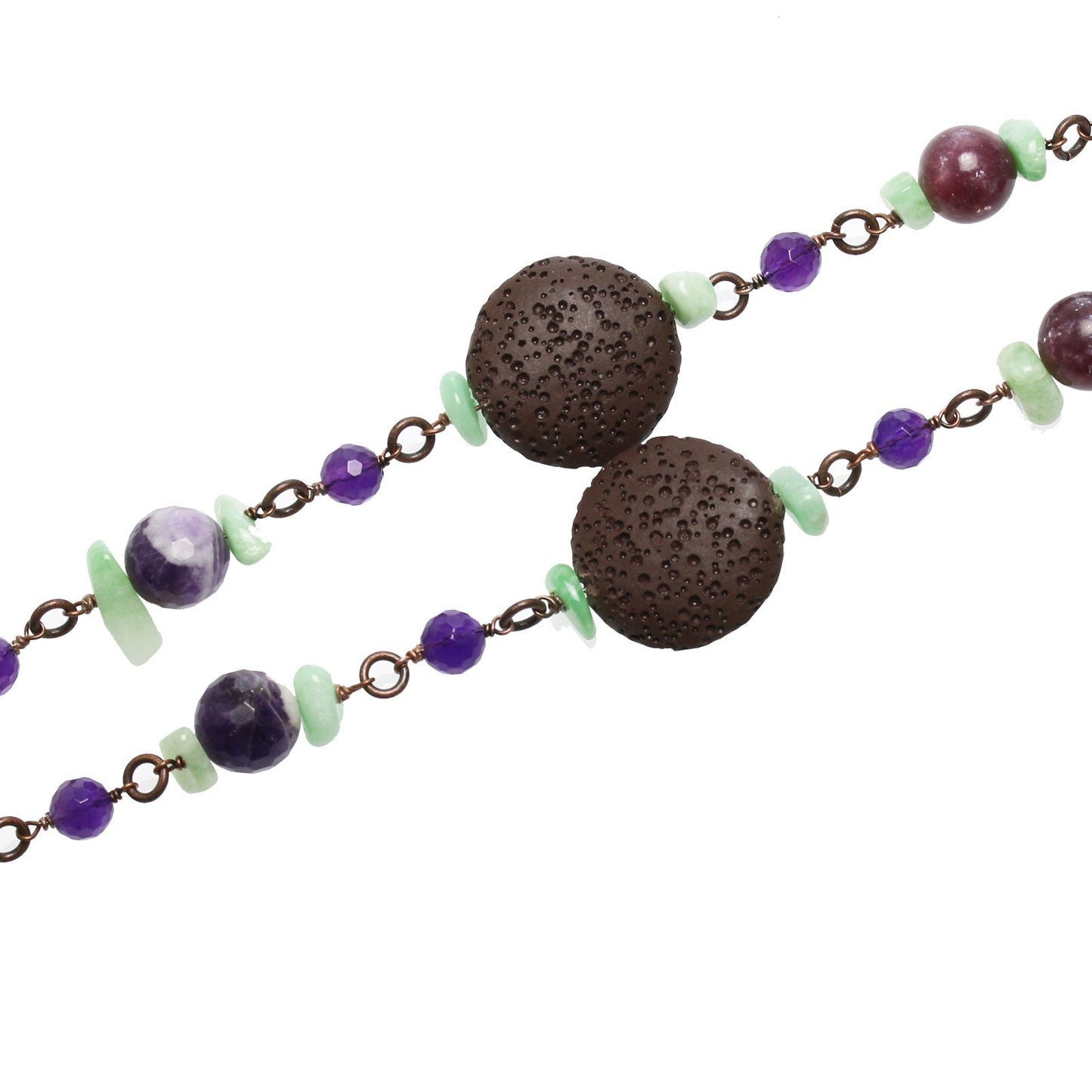 - Amethyst, Smoky Quartz, Muscat Feldspar, Stichtite, Lava, Phosphosiderite