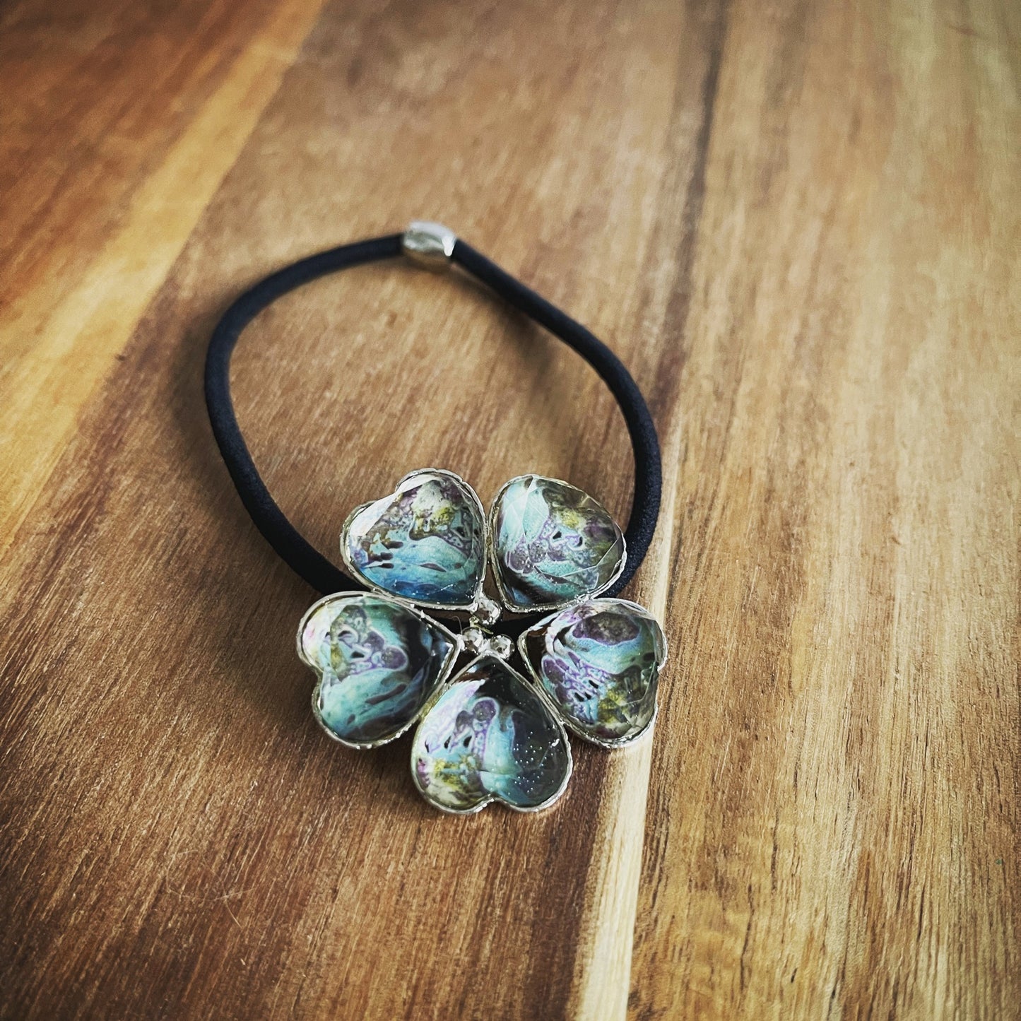 It is a gorgeous hair elastic heart type resin parts of "Amazon Series" (Blue). It is a gorgeous design that shines beautifully colored flower-shaped resin in your hair. To the fashionable accent of the hairstyle.
