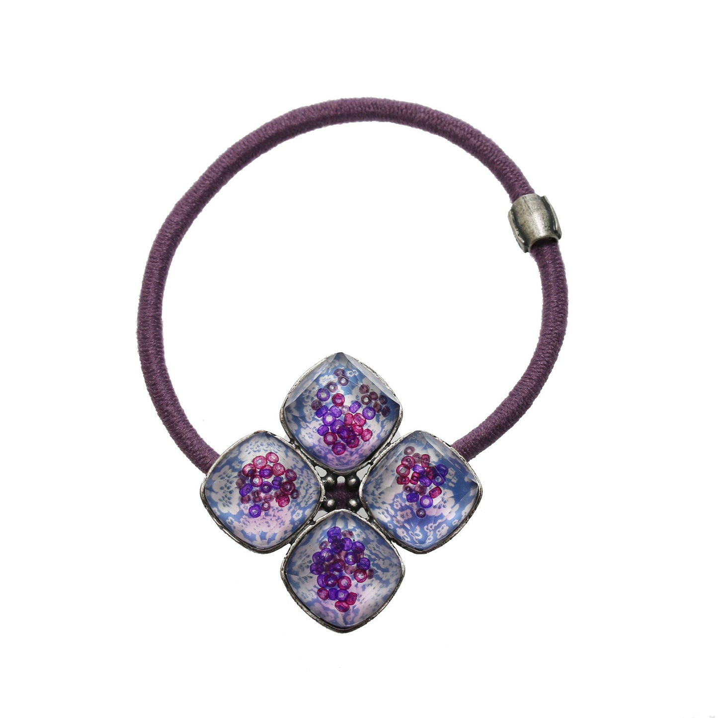 It is a gorgeous hair elastic using resin parts of "Plum Cake Series" (Purple). Shine to the hair with unique shades. Just putting your hair together will make it fashionable.