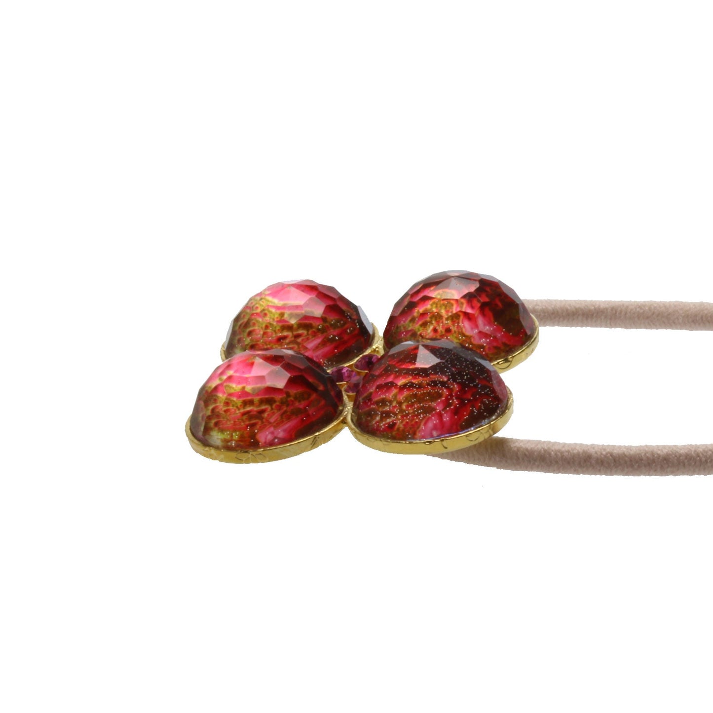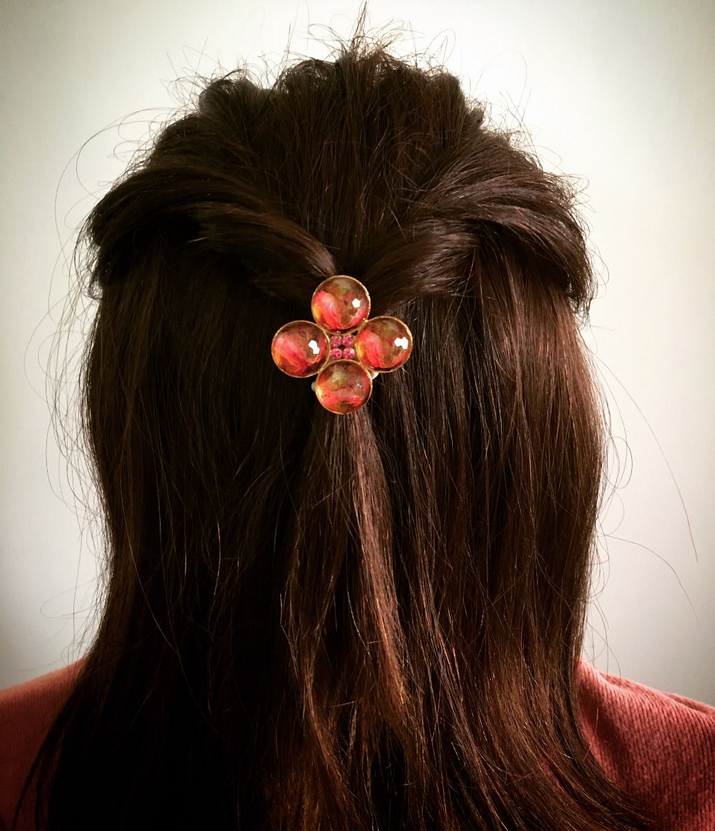 It is a hair elastic from the "Amazon Series" (Red) fancy flower shape made of resin. The combination of red and gold are superb and goes well with your hair. The pink elastic is a point. It has a big motif, but you cannot feel the size because you can wear it easily. Please enjoy it with your clothes.