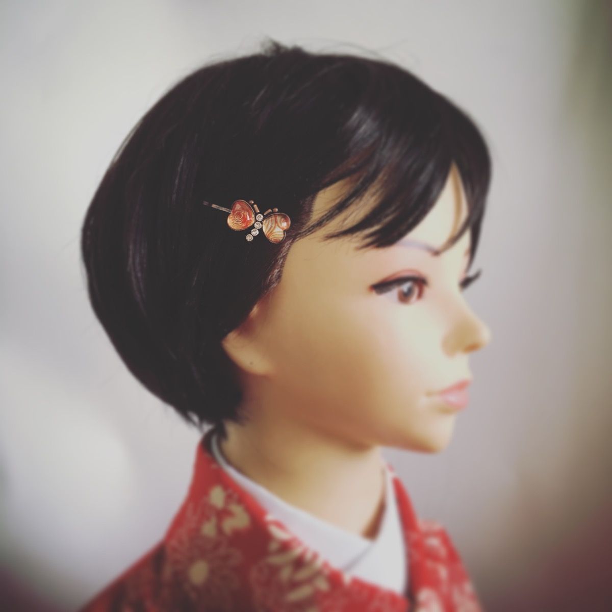 It is a gorgeous hairpin using resin parts of "Vortex Series" (Orange). We combined resin parts of heart with butterfly type. Cute design and shine on your hair. Recommended for individual style accent of hairstyle.