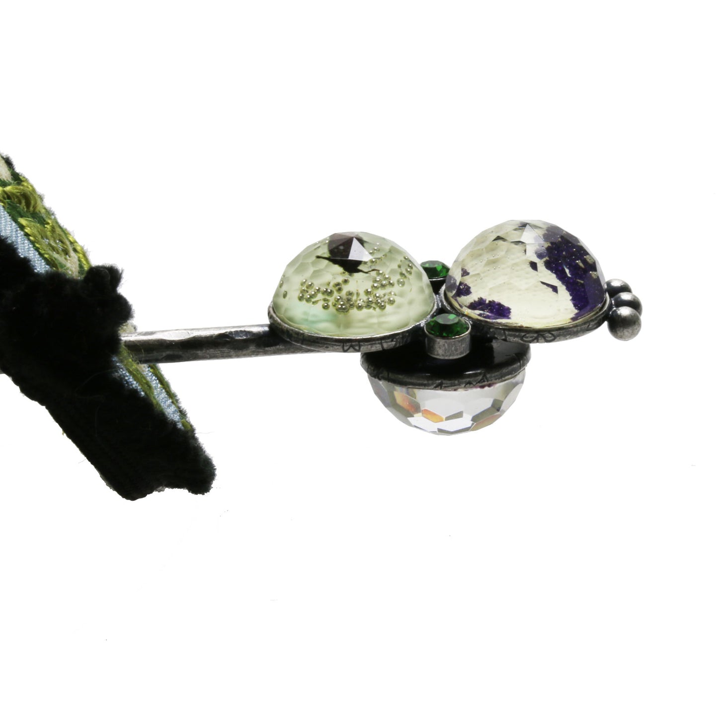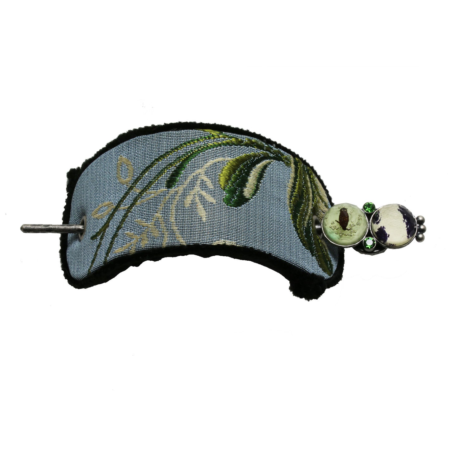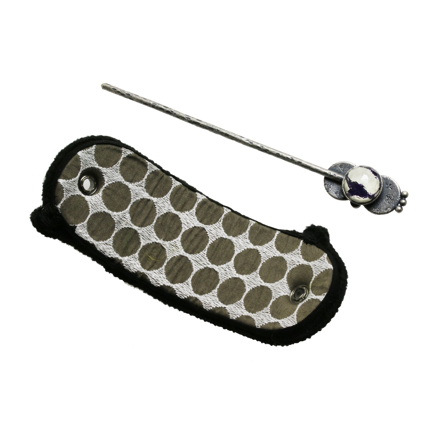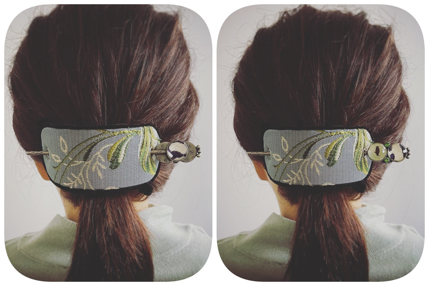 It is a stylish barrette that the hair stick part can also be used to make a bun style. the "Splattered Series" and resin parts with owl motif are arranged back-to-back. The base is made of compressed felt and covered interior fabric. Both side are available in different colors. You can enjoy flexible hair arrangement your own way.