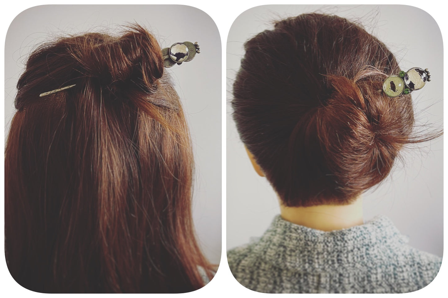 With other hairpins, I often had to use a hair tie first because I was afraid they’d slip out, but this one feels stable on its own.