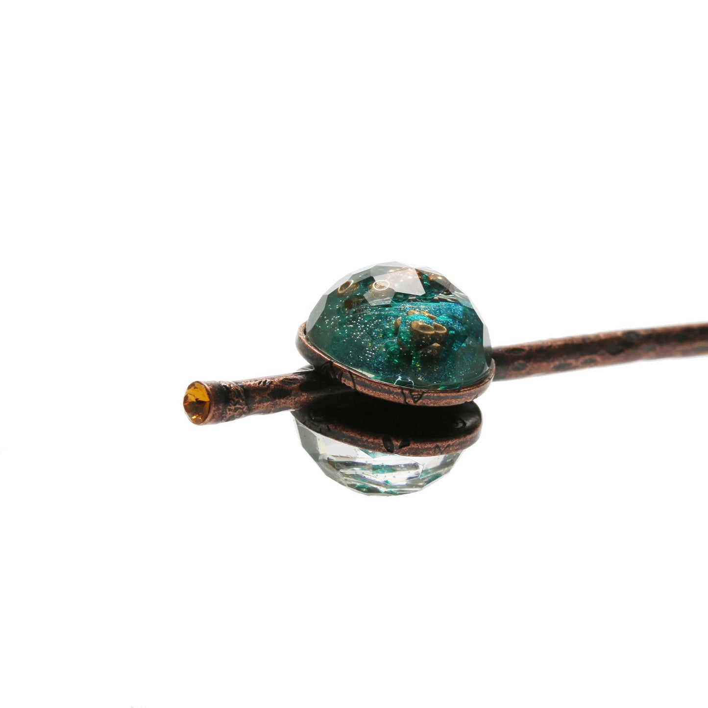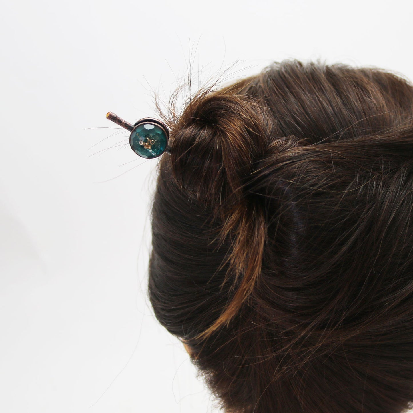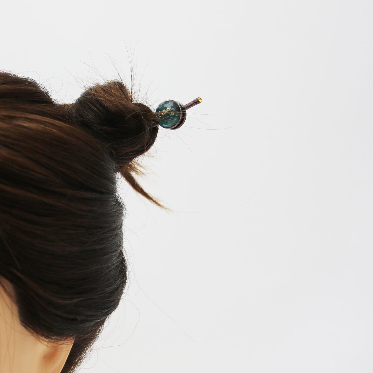 It is the hairpin using the resin parts of the "Jewel Box Series" (Emerald). It shines on hair with a simple shape and chic hues. Individual accent of dumpling hair.