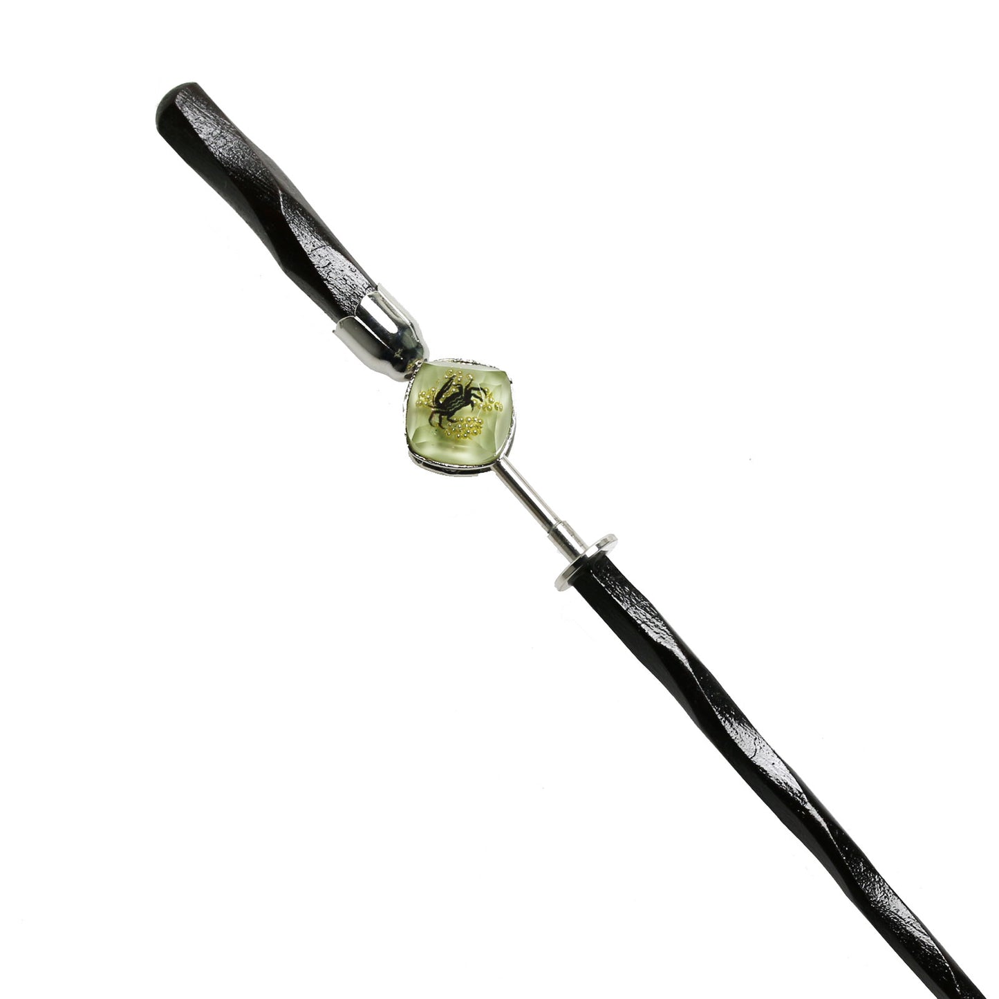 This wooden changeable ornament hairpin has back-to-back resin parts with crab and horse illustrations. You can see the tiny beads at the back of the crab and horse. The contrast between the calm atmosphere of the wood and the colorful resin parts is a fun design. It goes well with a kimono and clothes.