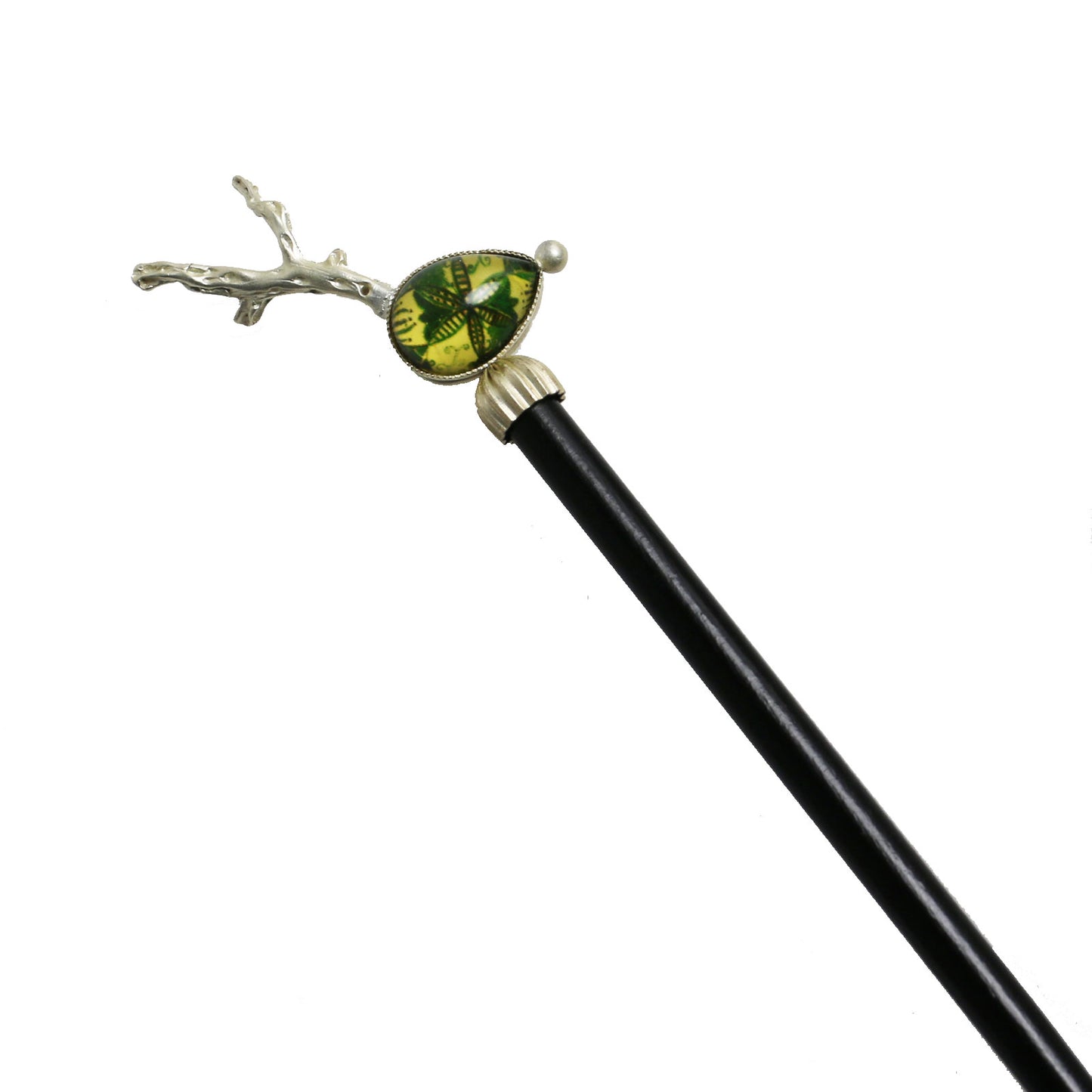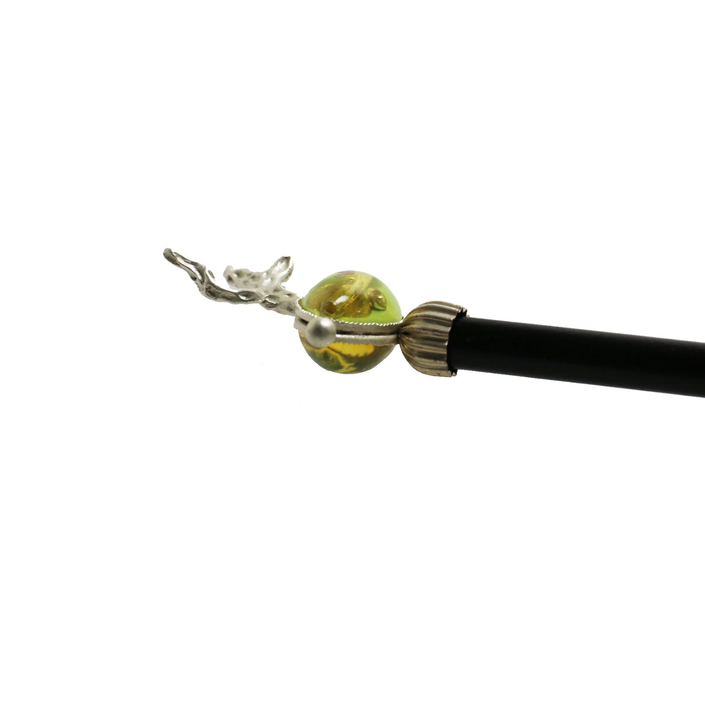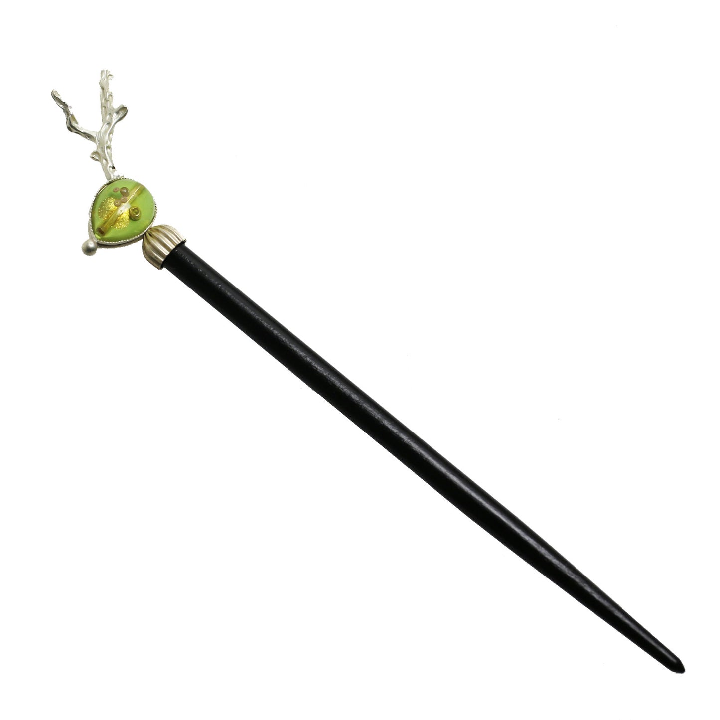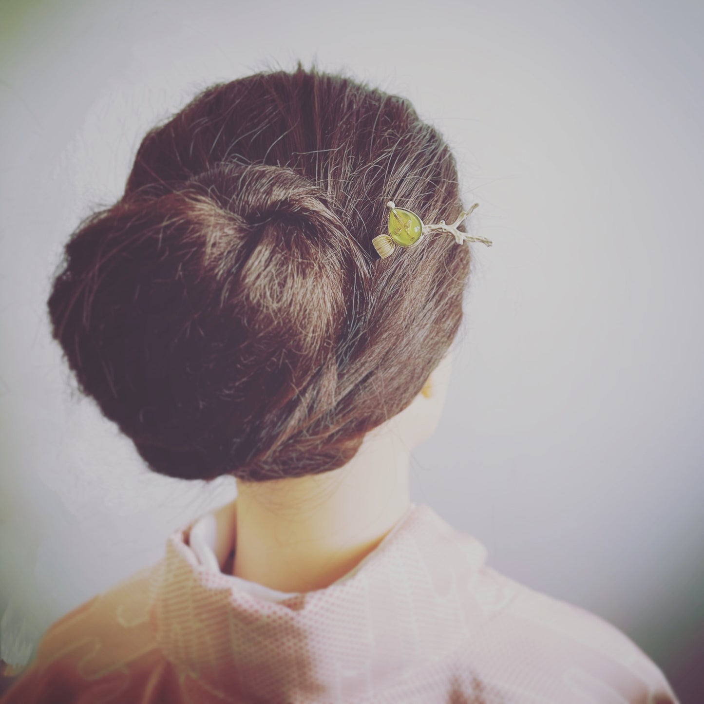 It is a resindeer hair stick using the resin parts from the "Lily Series" (White Green) and "Jewel Box Series" (Blue). Just insert it into the finished bun hair. It is made of wood , so it is easy to fasten hair and matches with kimonos. It is also a lovely gift.