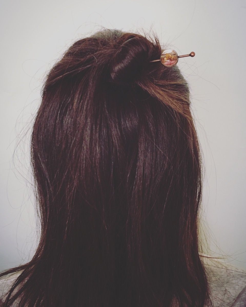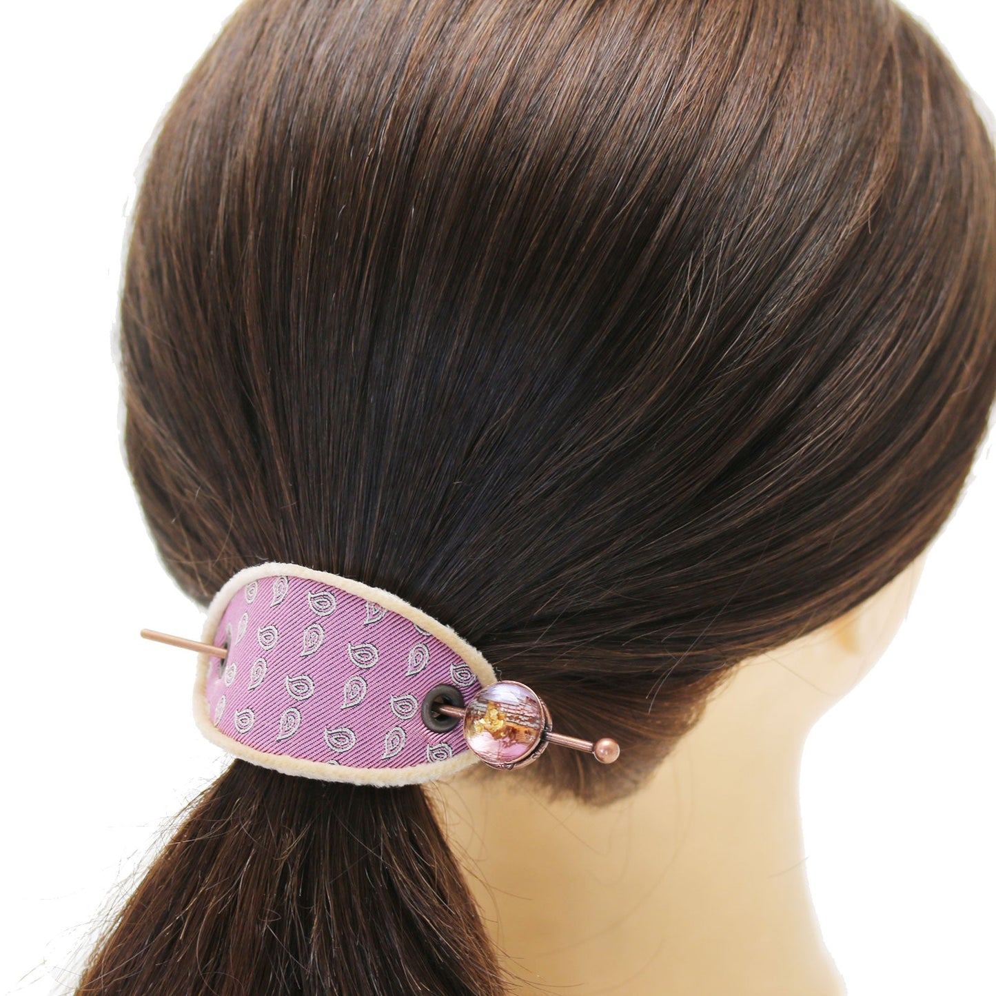 It is a hairpin barrette using resin parts of "Musical Note Series" (Pink). It is easy to put it together with rubber and wear it. It is suitable for half-up. Recommended for fashionable accent of hairstyle. Cloth is a silk fabric for necktie purchased in Europe. This product is made intentionally so that silver or gold powder is put in the resin as a design and the musical note is not seen well. Because I cut the part of the note randomly, it may become a slightly different hue from the photograph.