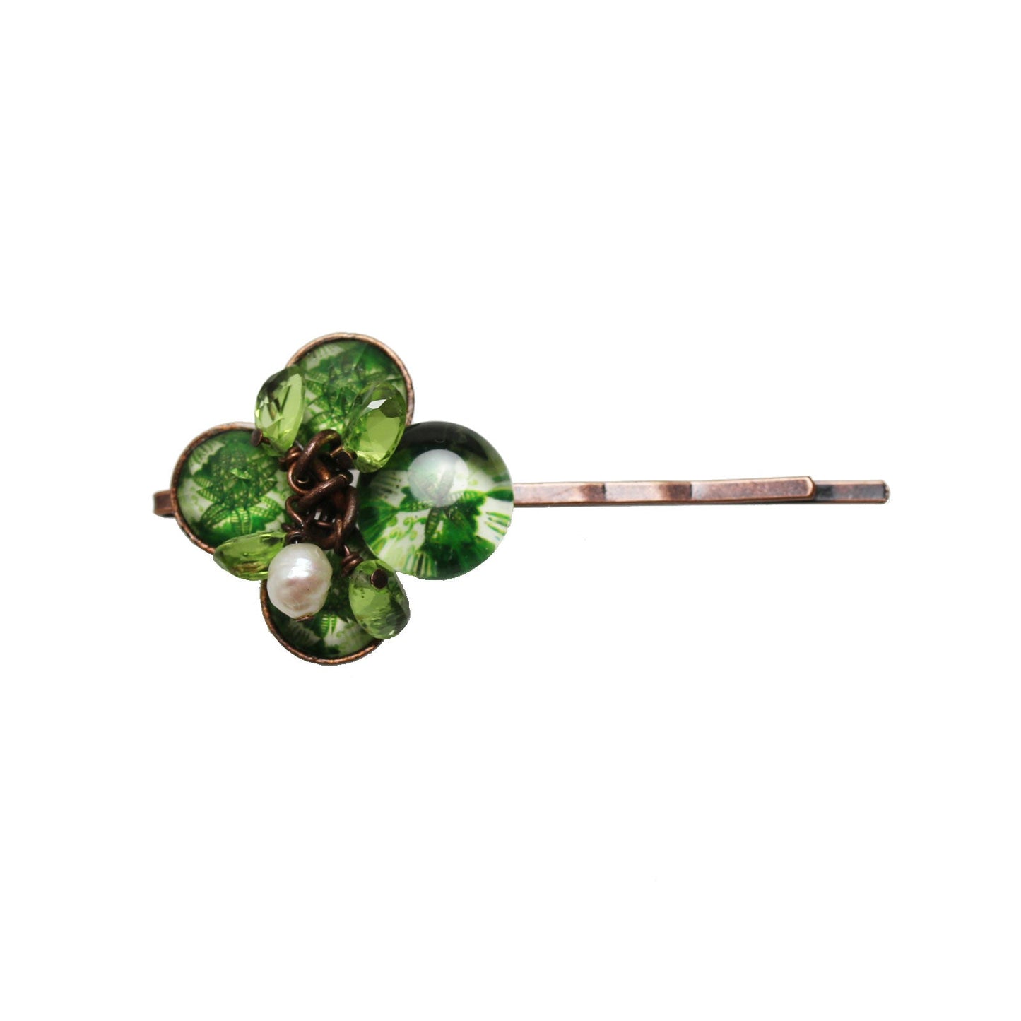 It is a gorgeous hairpin from the "Lily Series" (White Green) made from resin. It has hanging peridots and freshwater pearls in the center. You can use it as a kanzashi. It also suits with elegant Kimono hairstyles.