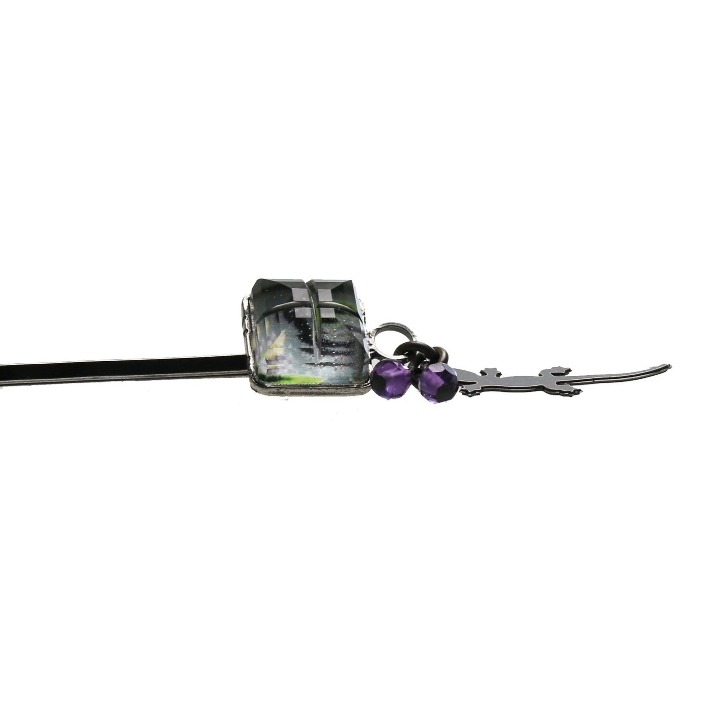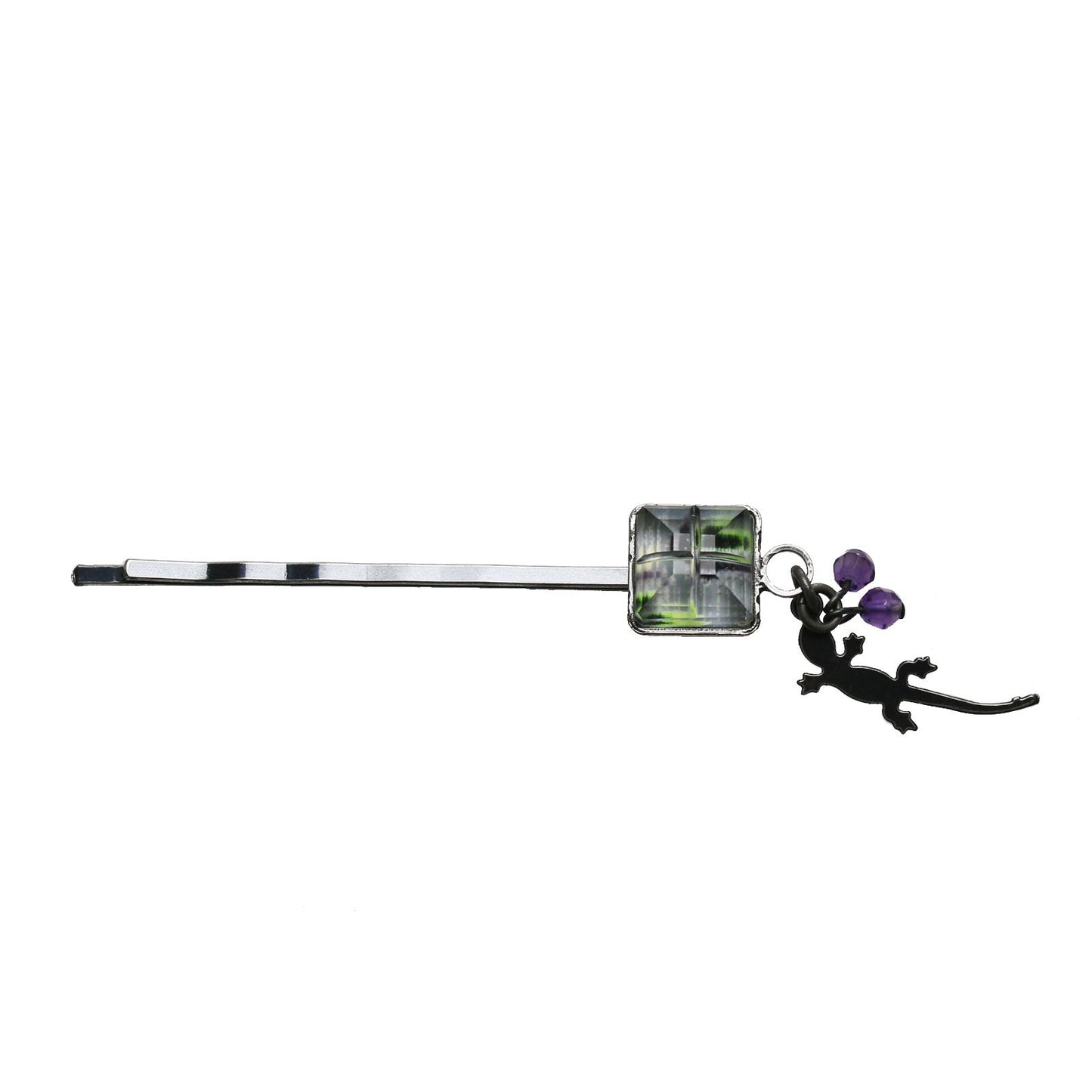 It is a hairpin using square resin parts of "Dororon Series" (Gray). Amethyst combined with color shade of resin, fashionable design swaying dinosaur parts. To the accent of the hair arrangement please.