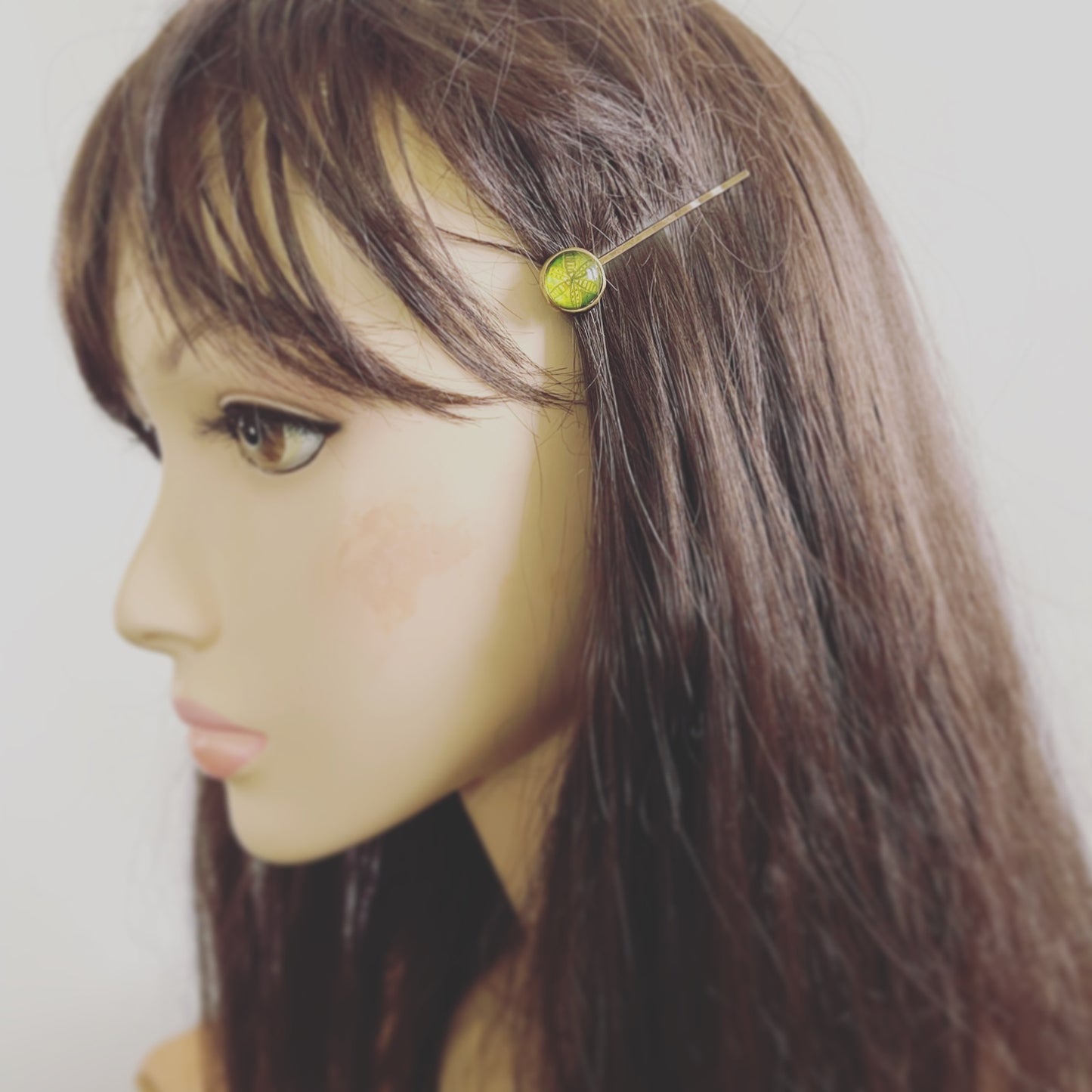 It is a hairpin using the resin part from the "Lily Series" (Yellow Green). Enjoy the beautiful green illustration that brings out the transparency. Use it as an accent for a Japanese hairstyle. If you fasten it above your ears, it will look mature. This hair accessory is recommended as a gift.