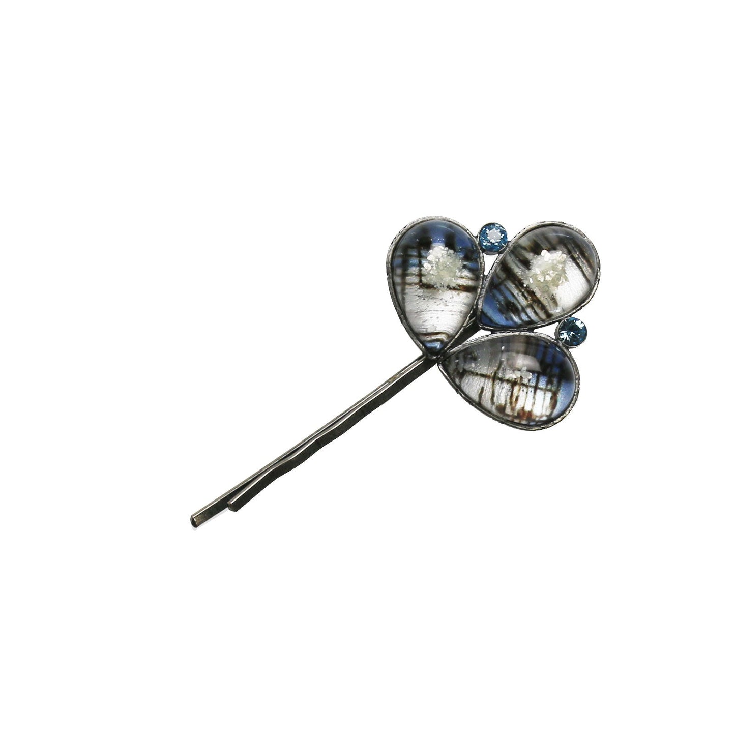 It is a gorgeous hairpin using resin parts of "Musical Note Series" (Blue). It is a unique design combining three drop parts. It is recommended for a casual accent of a hairstyle. This product is made intentionally so that silver or gold powder is put in the resin as a design and the musical note is not seen well. Because I cut the part of the note randomly, it may become a slightly different hue from the photograph.