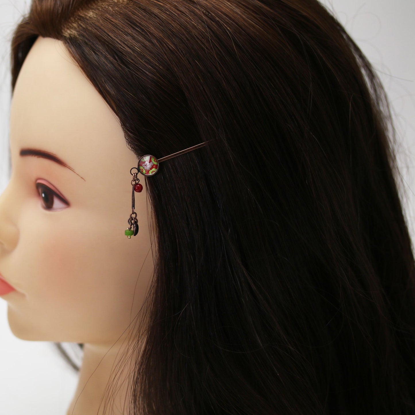 It is a hairpin using resin parts of "Watermelon Series" (Red). Coral (dyeing), Chrysoprase hanging hanging according to the color of the resin. If you hold the bangs or put at the top of your ear, you will not become childish. Recommended for individual style accent of hairstyle.