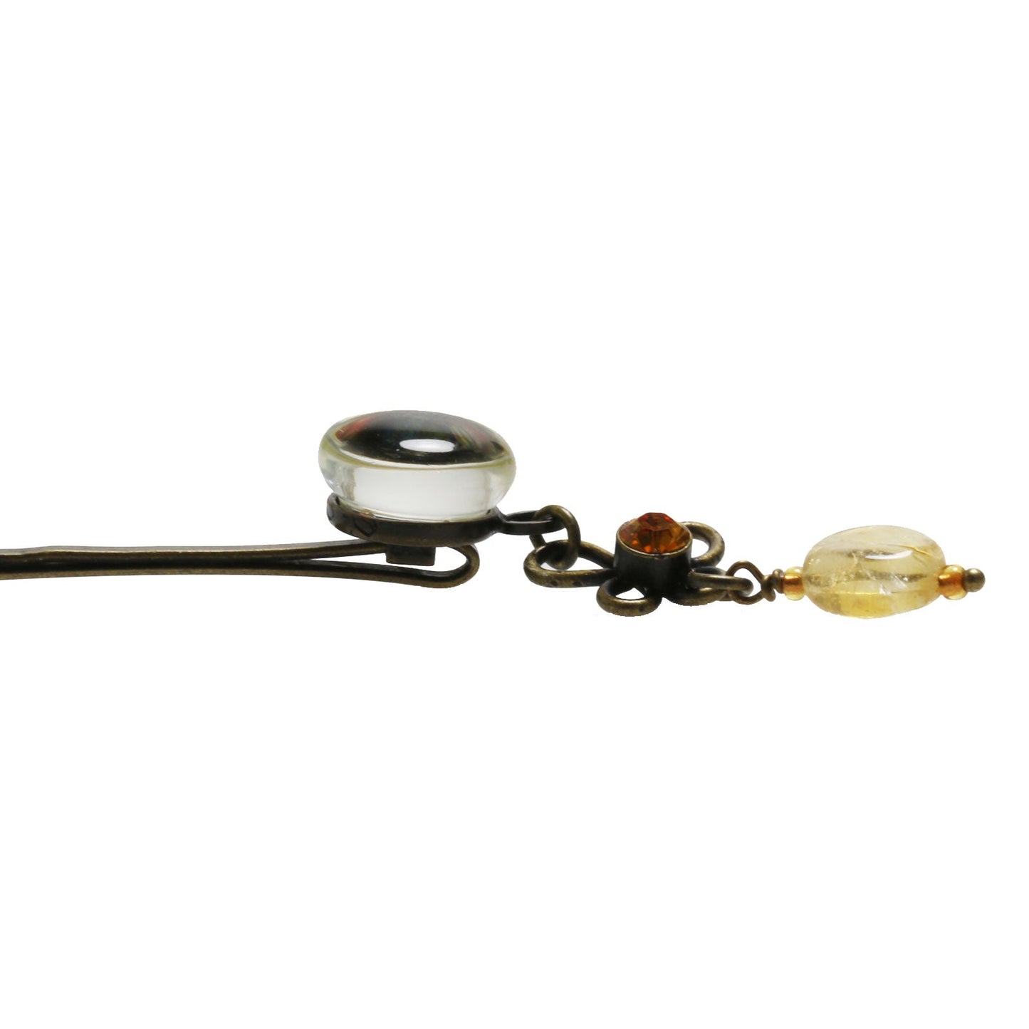 It is a simple hairpin using the resin part of the "Cicada Series." The ribbon part and the citrin are hanging. You will look like a maiko when wearing with bangs, so it is also recommended to wear a kimono. The decorative parts can be removed from the hairpin.