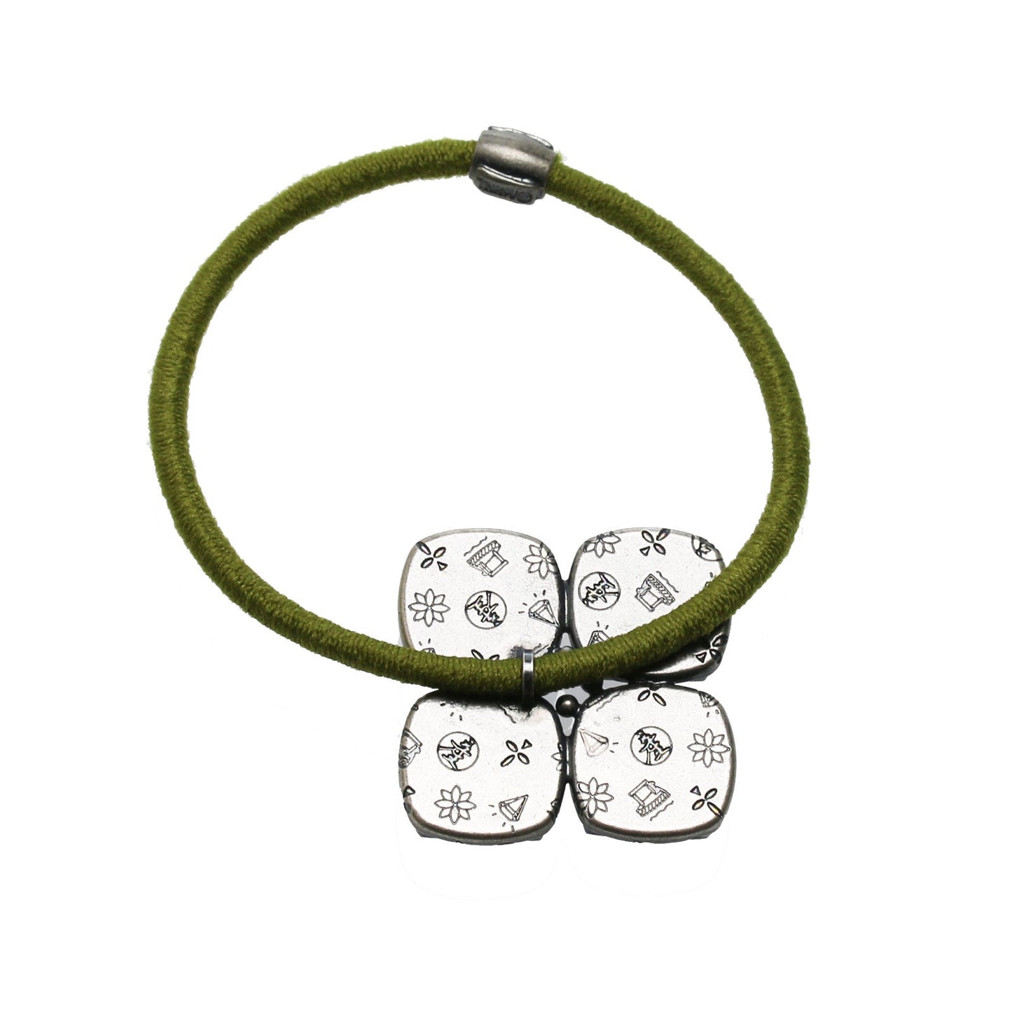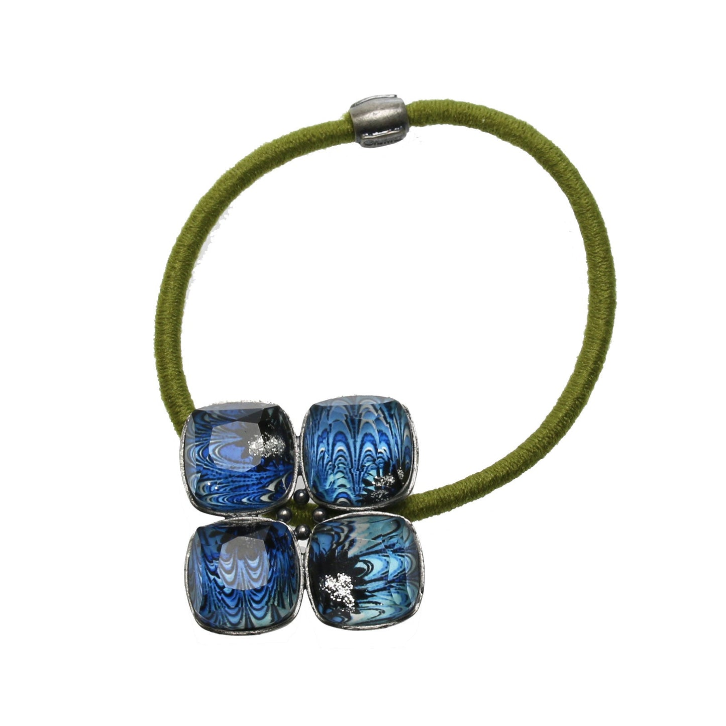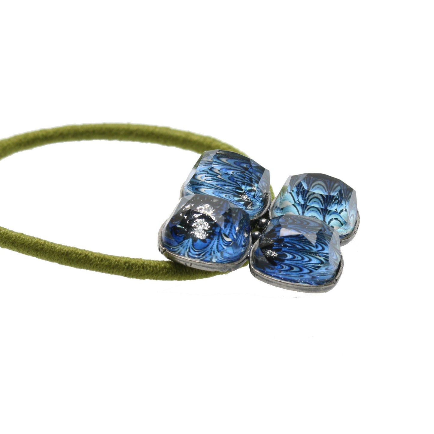 It is a hair elastic from the "Marble Series" (Blue) made of resin. We made a hydrangea shape with the square parts. The shape of the flower is a popular design. The chic marbled pattern looks luxurious in your hair. The hydrangea part and yellow-green color of elastic are well-coordinated. You can put it together into your hair, and it gives you a stylish look in the back.