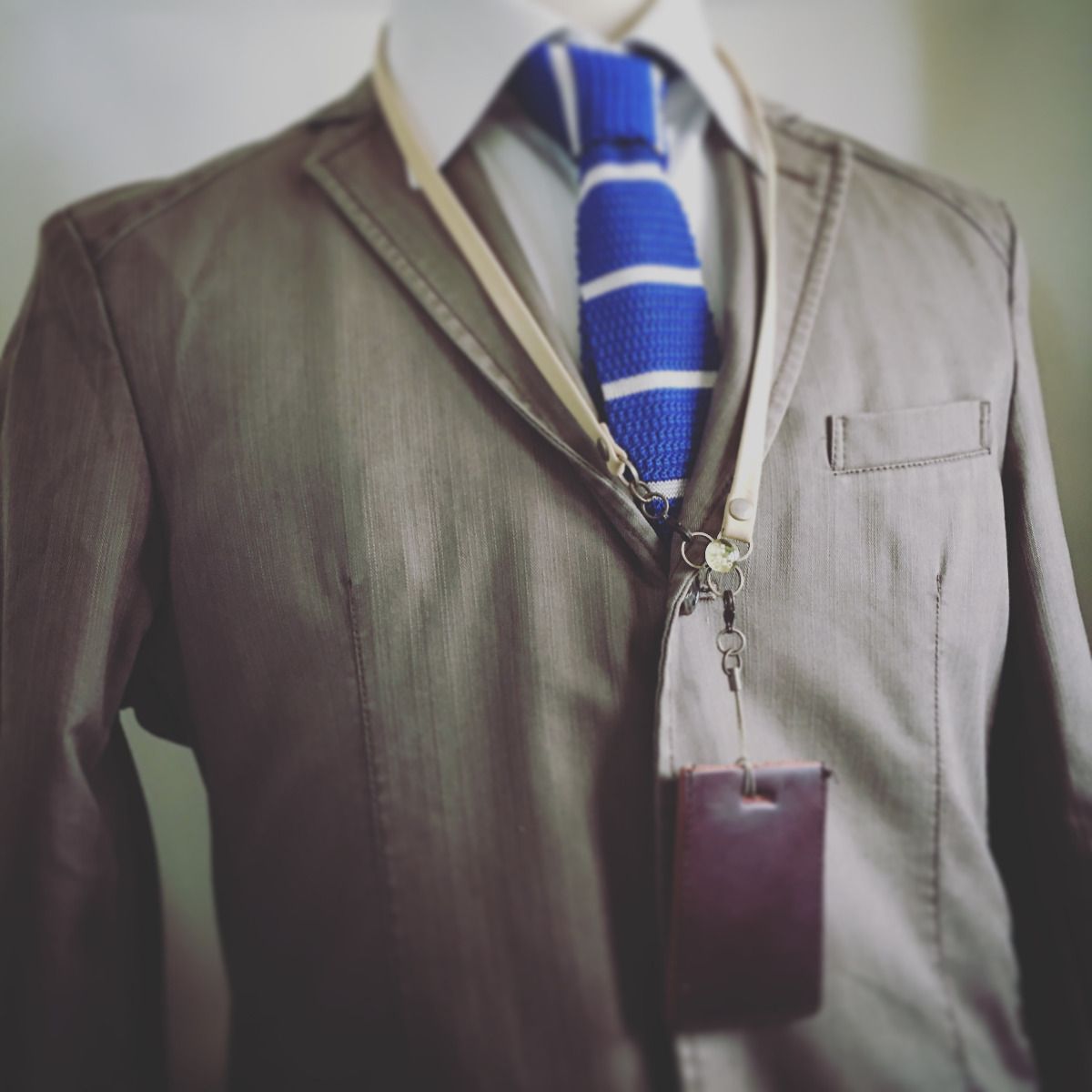 Id Holder Neck Strap Leather Green Plum