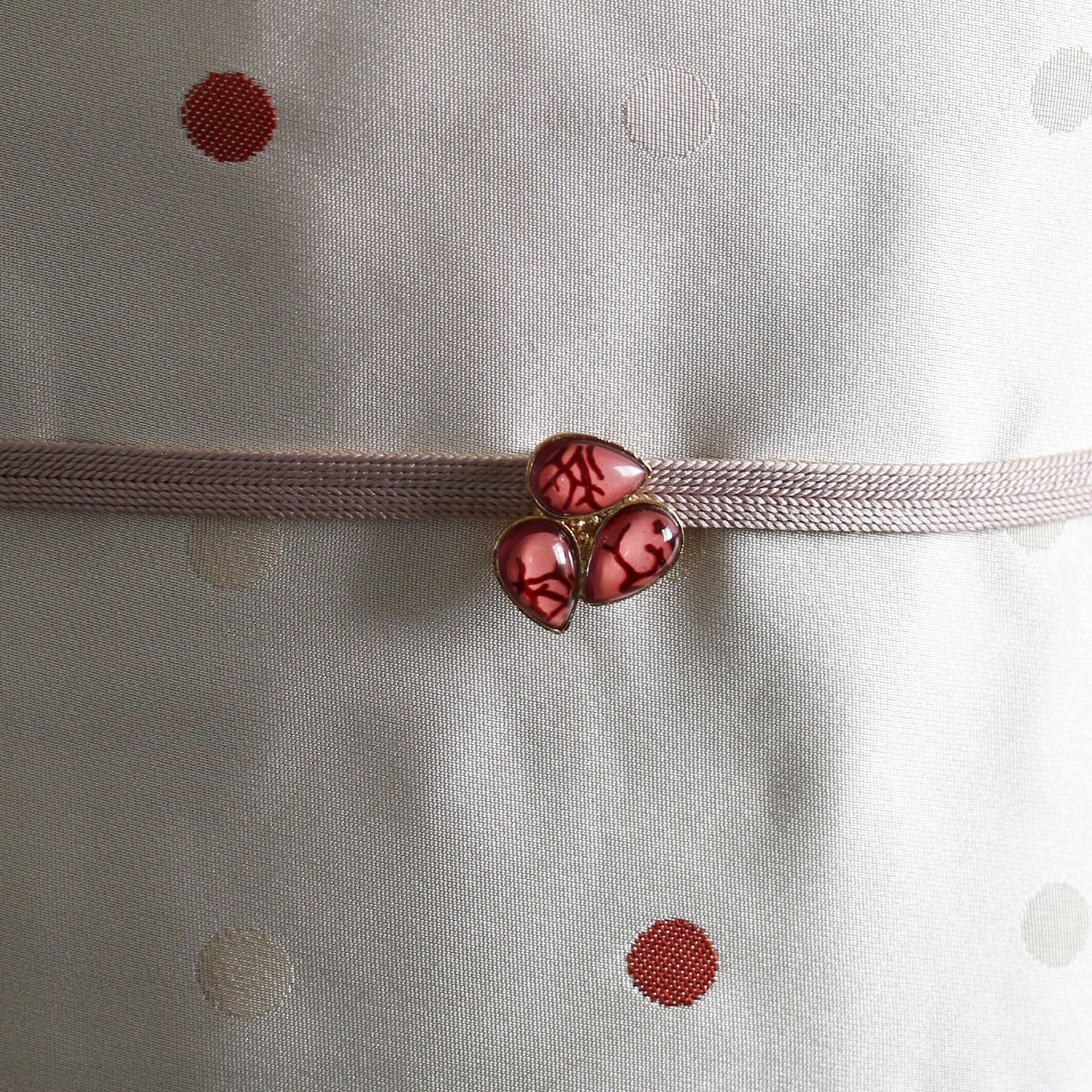 It is a "obidome" Japanese kimono accessory using resin parts of "Oxblood Coral Series". The gentle pink of the coral pattern attracts an eye. Recommended for casual and unique accent of the belt. *Japanese Kimono accessories "Obidome" refers to an accessory passed through 'Obijime'(a string tied around the waist to fix obi).