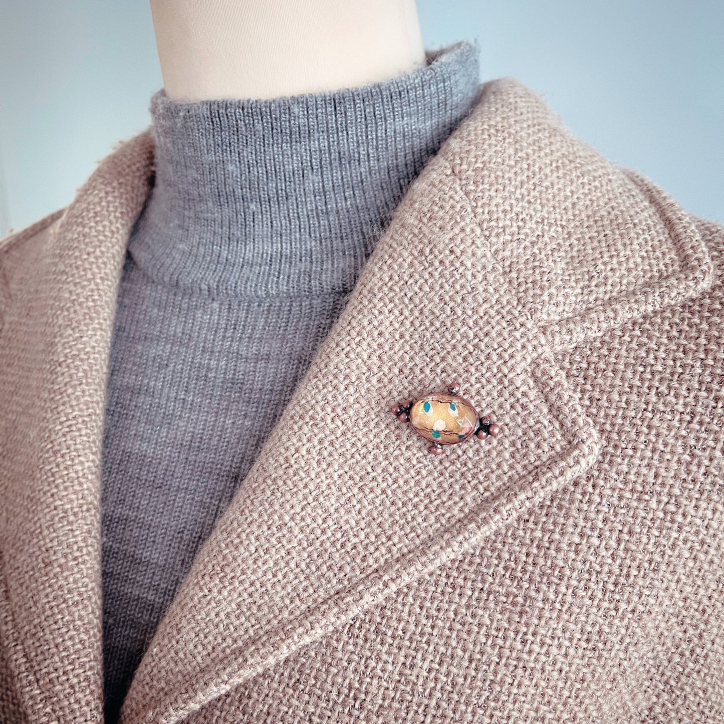 It is a lapel pin. The top part of lapel pin has an oval shape "Vine Series" (Gold + Blue) that was made using resin. It is a fashionable item which can be put on your jacket's lapel or on a hat. Wear it as a fashion accessory, when you go out.