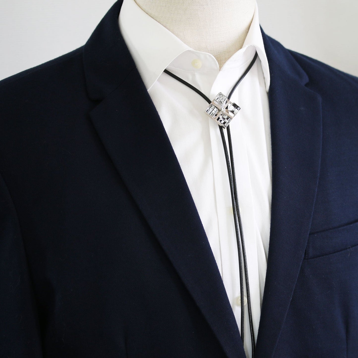 Leather Strap Bolo Tie Black And White Square