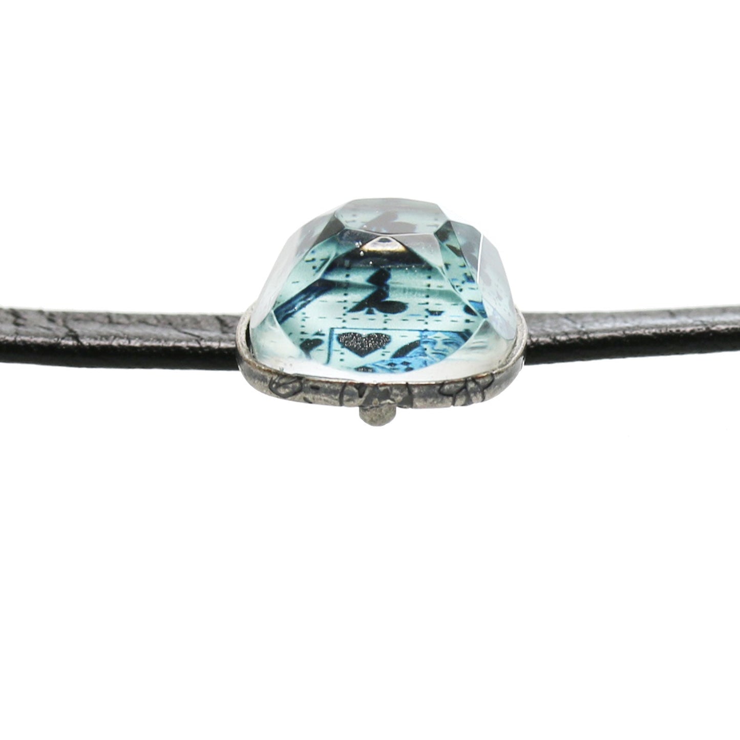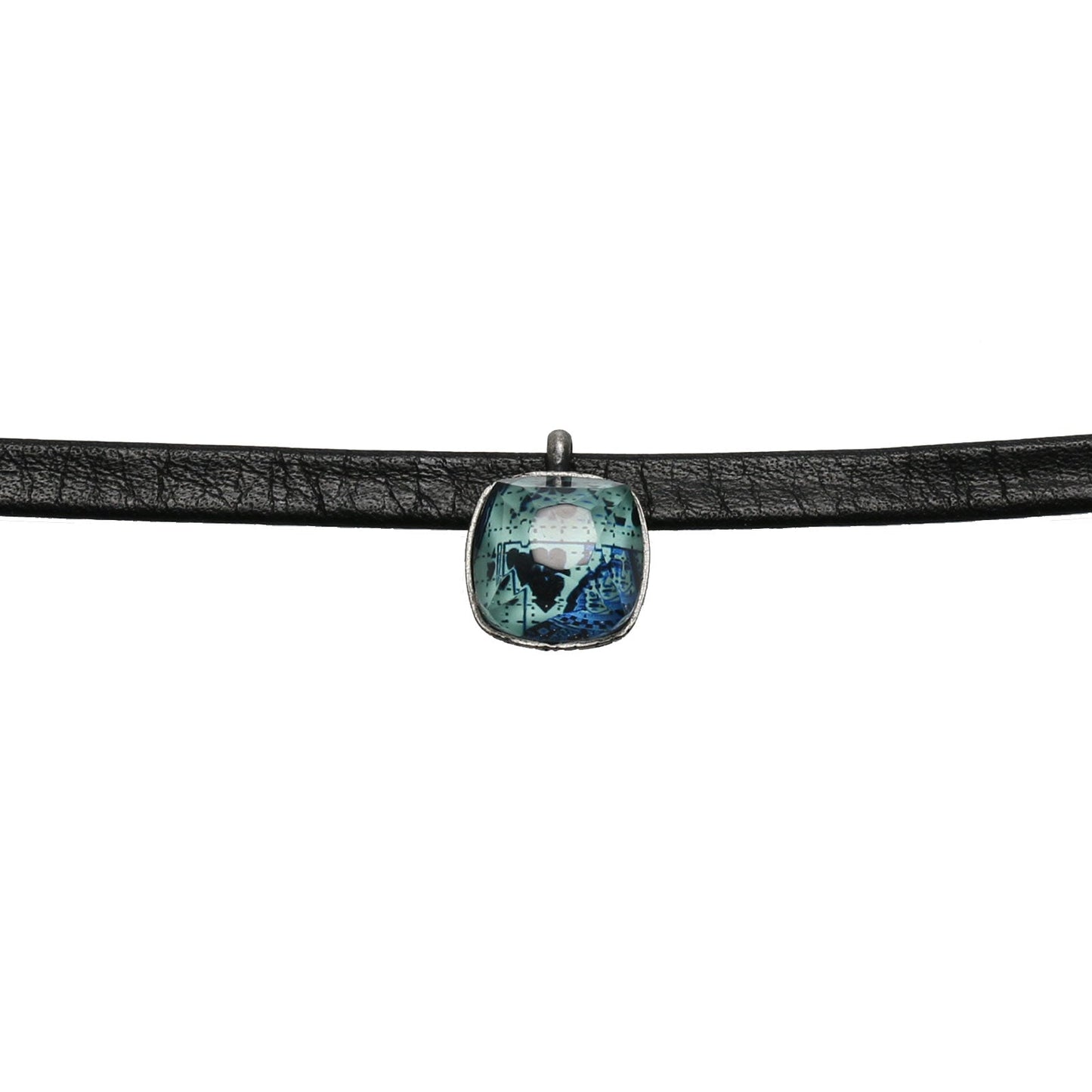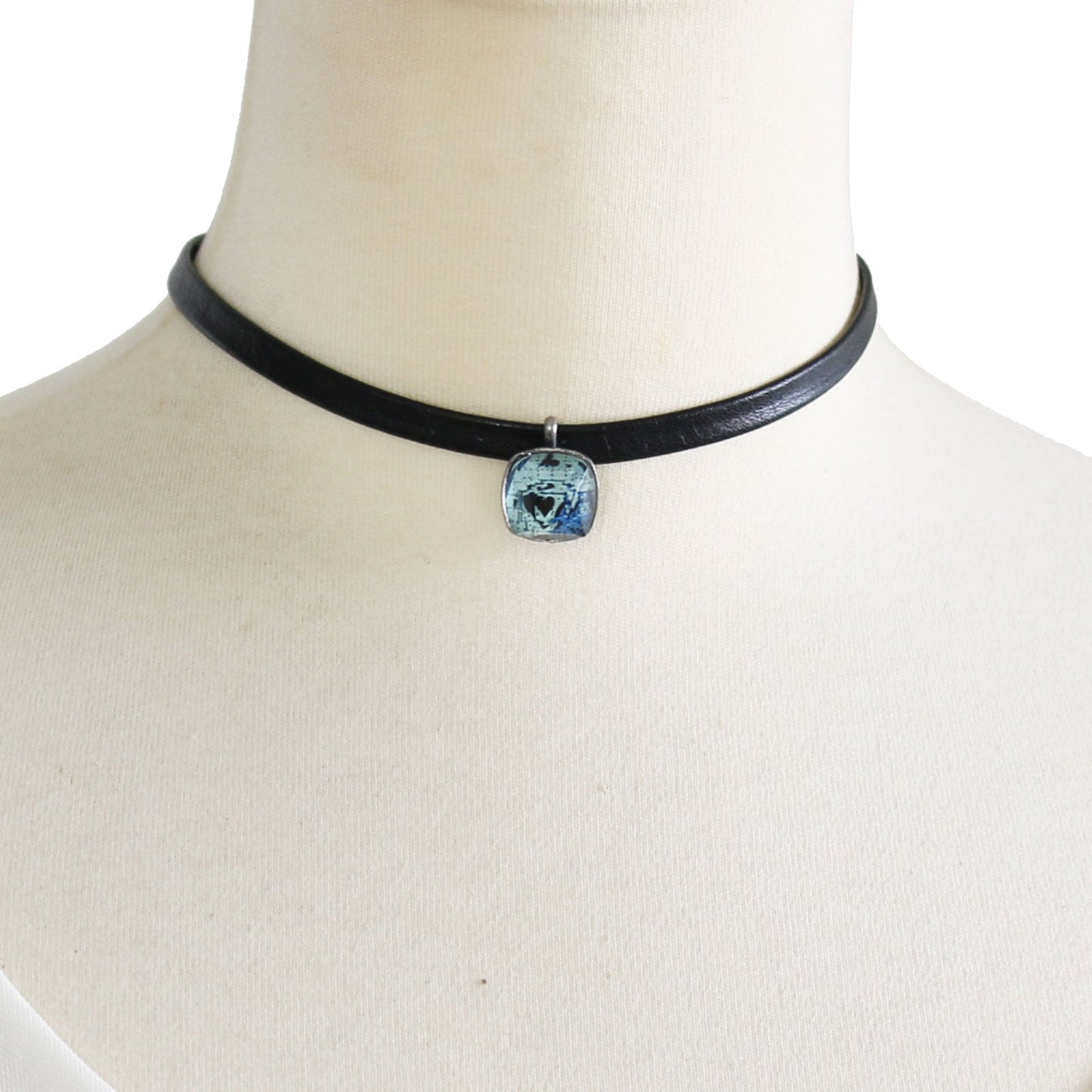 It is a leather strap choker using resin parts of "Play Cards Series". It is easy to coordinate as it is a simple decoration. Recommended for casual attire accents. The stone that is attached is an onyx.