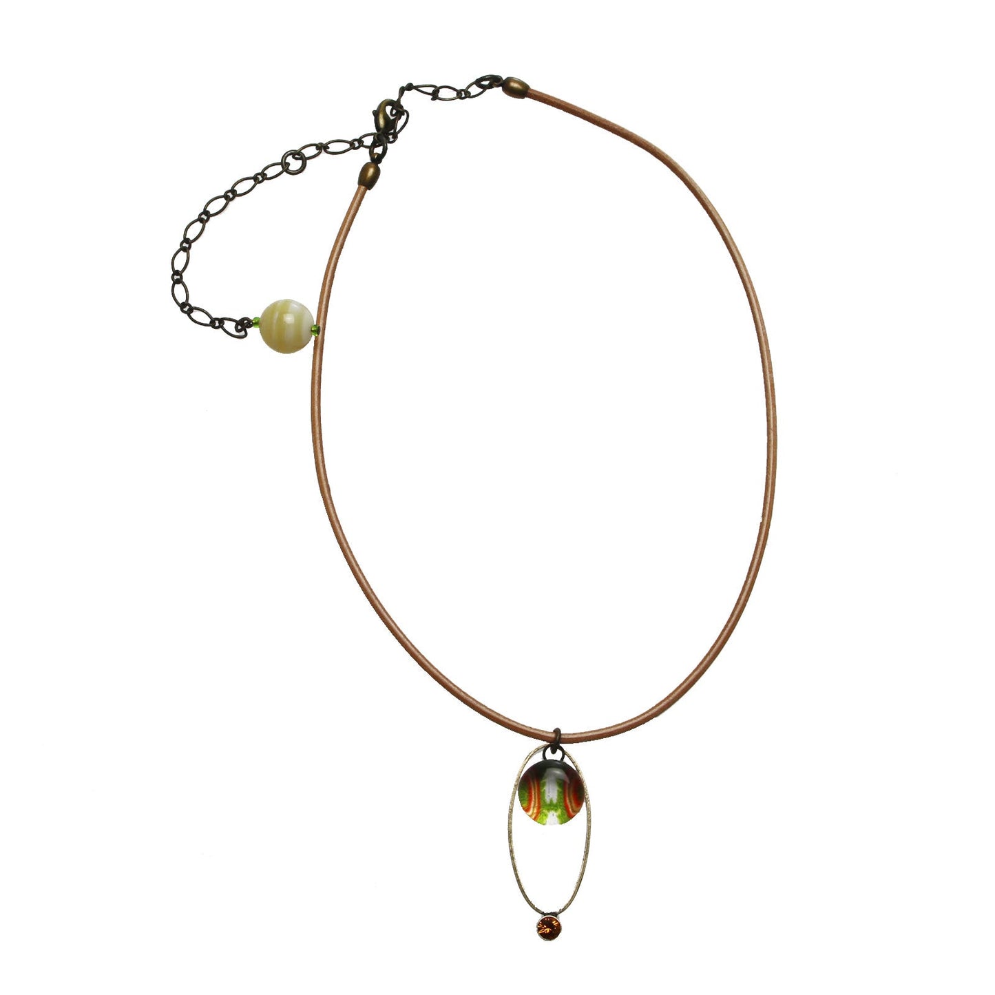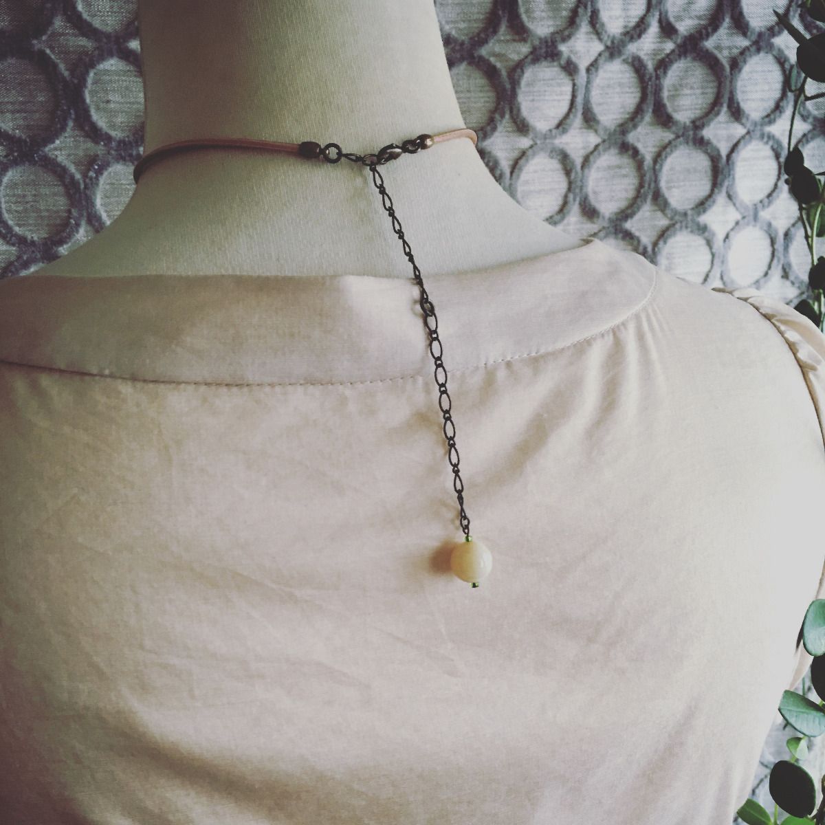 It is a leather cord choker using "Cicada Series" resin parts. It is easy to coordinate with simple decorations. To the casual and original accent of the neck origin. We attached a mother-of-pearl to the adjuster.