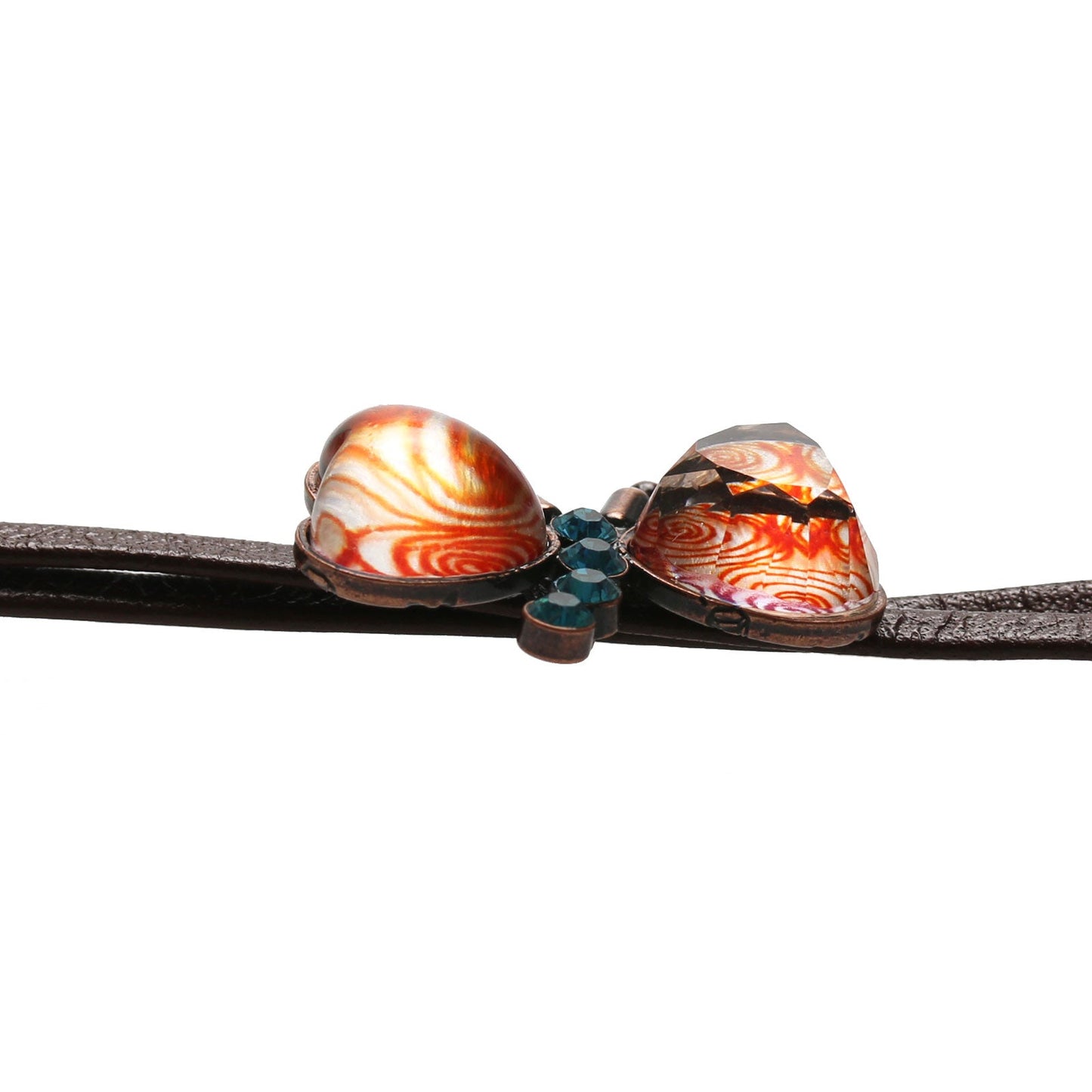 It is a leather strap choker using resin parts of "Vortex Series" (Orange). We made thin straps in duplicate. It is a cute design combining heart shaped resin parts into a butterfly type. Recommended for the unique accent of the neck. We attached a carnelian to the adjuster.