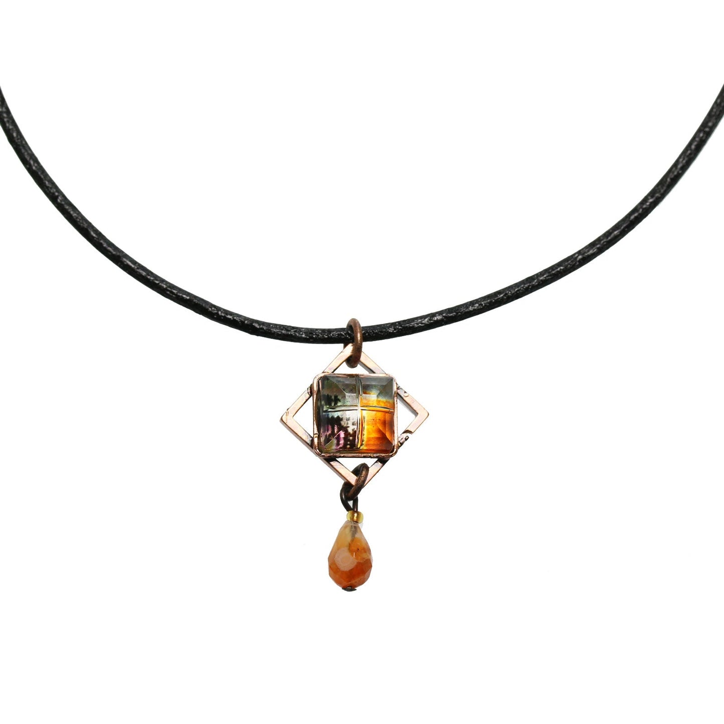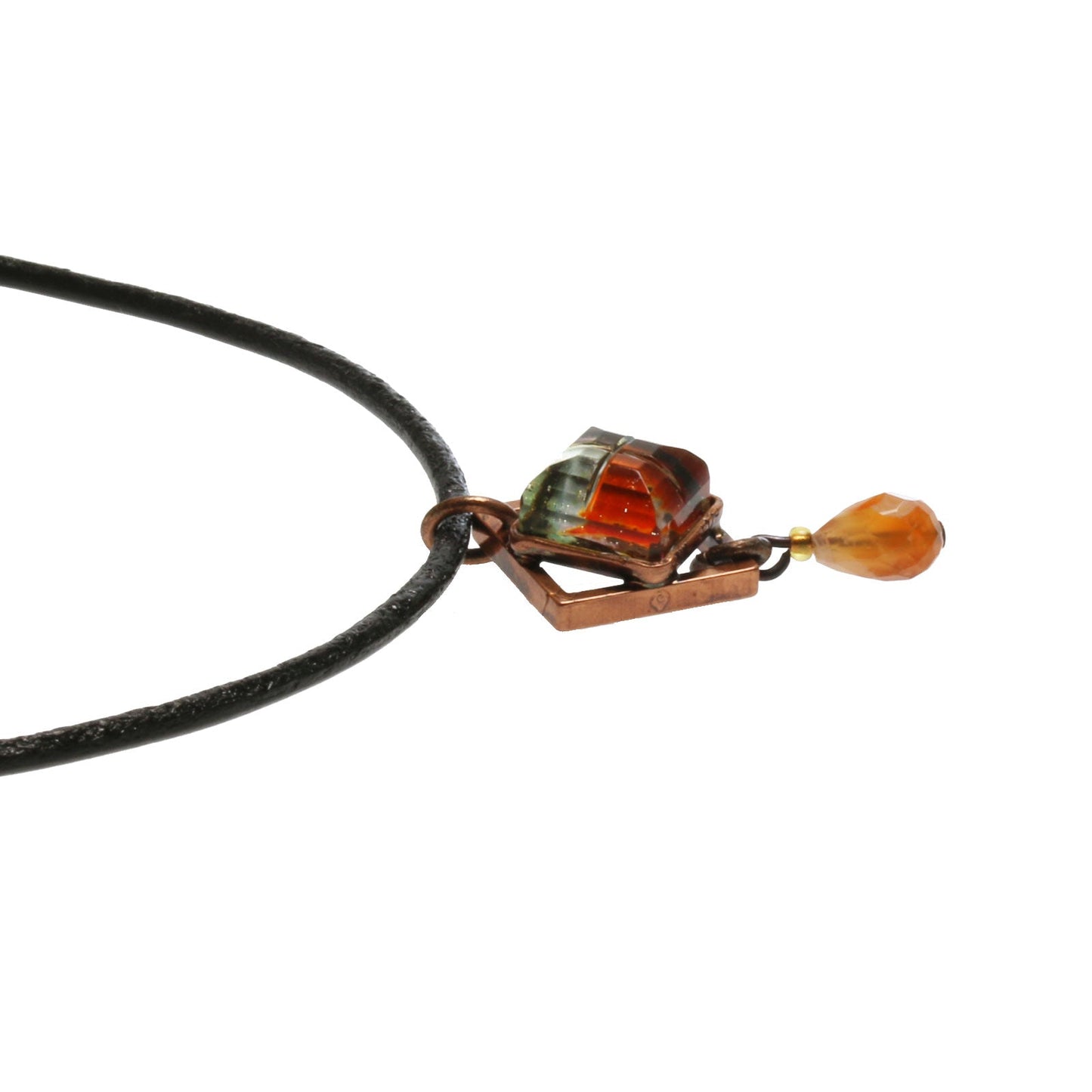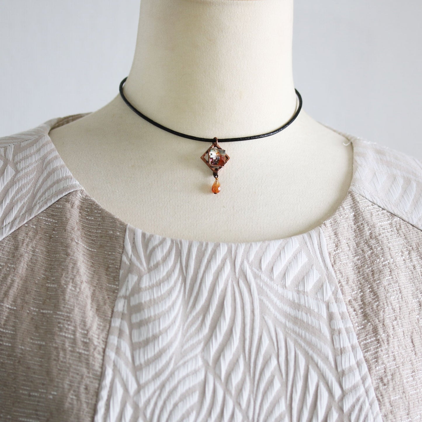 It is a choker using resin parts of "Pansy Series" (Orange). It is an eye-catching and distinctive shade. Please the casual accent of the chest. We combined Carnelian and turquoise according to the color of the resin.