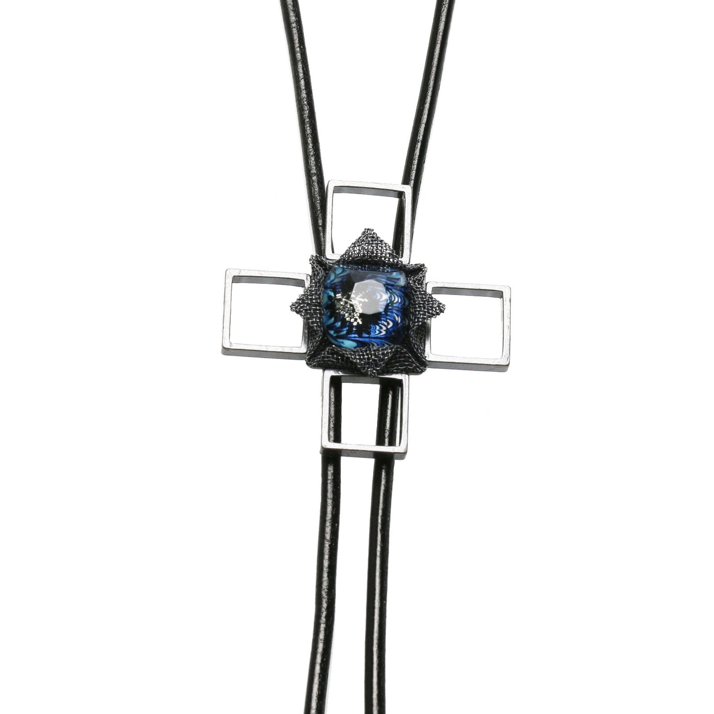 Leather Strap Bolo Tie Blue Cross
