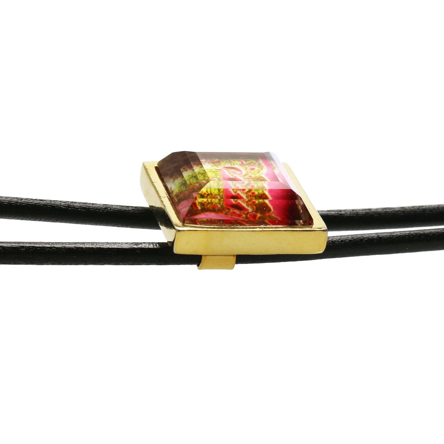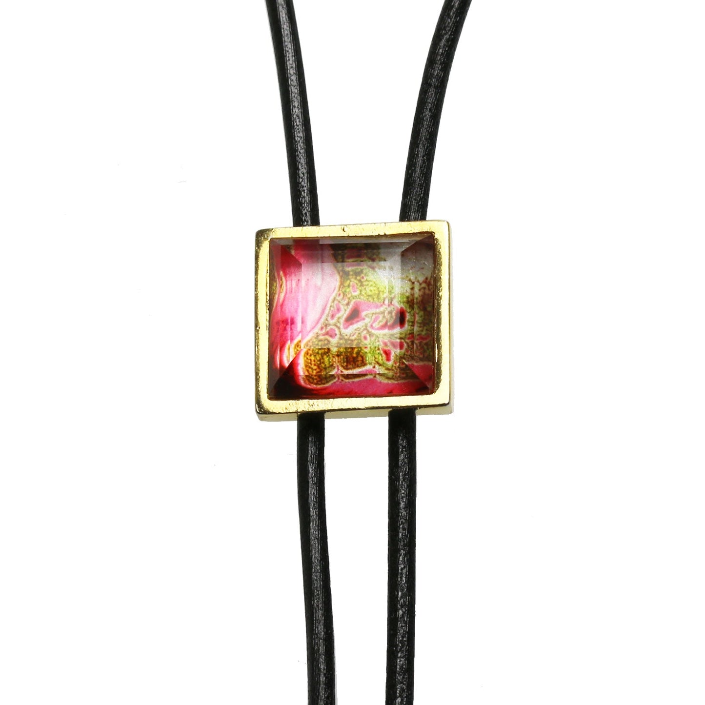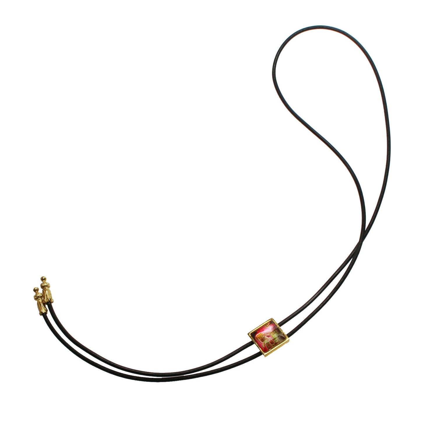 It is a leather strap bolo tie using square resin parts of "Amazon Series" (Red). It is easy to coordinate with a unique pattern and simple shape. Pleasing to casual attire accents.