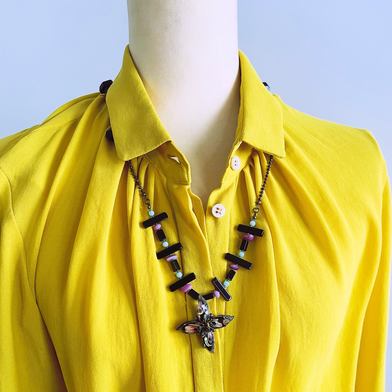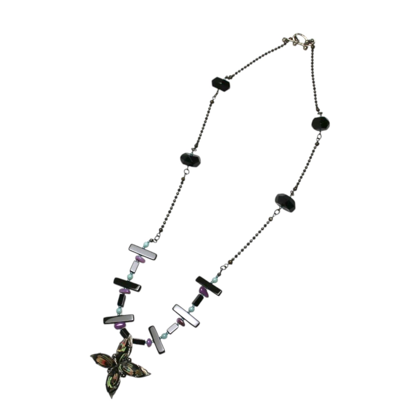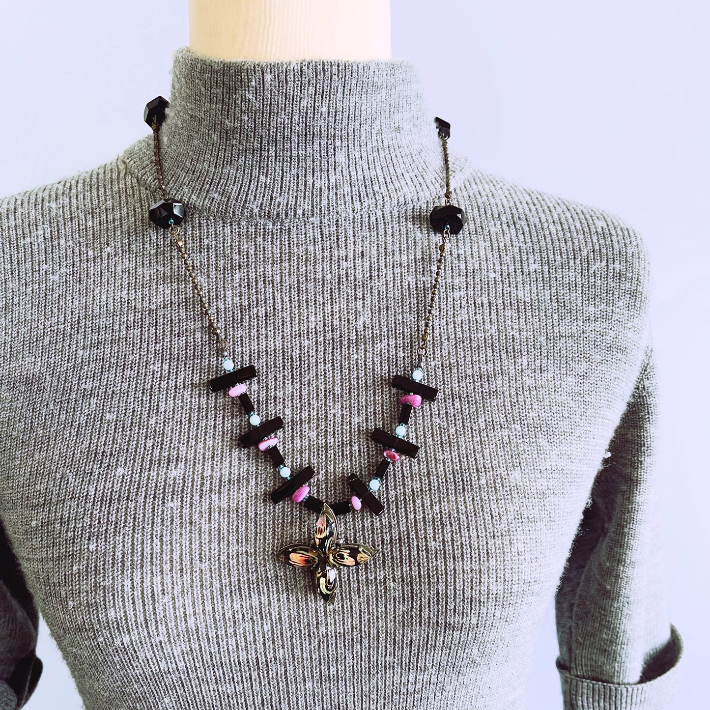 It is a necklace using the resin parts from the "Dororon Series" (Black) . The indescribable pattern blends with the black onyx to create a design that brings out the charm of adults. Enjoy it with a black top. This jewelry is also recommended as a gift.