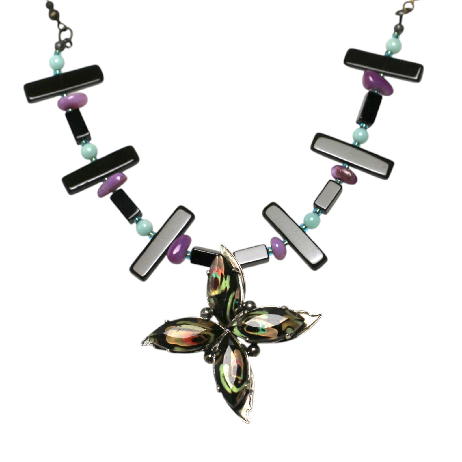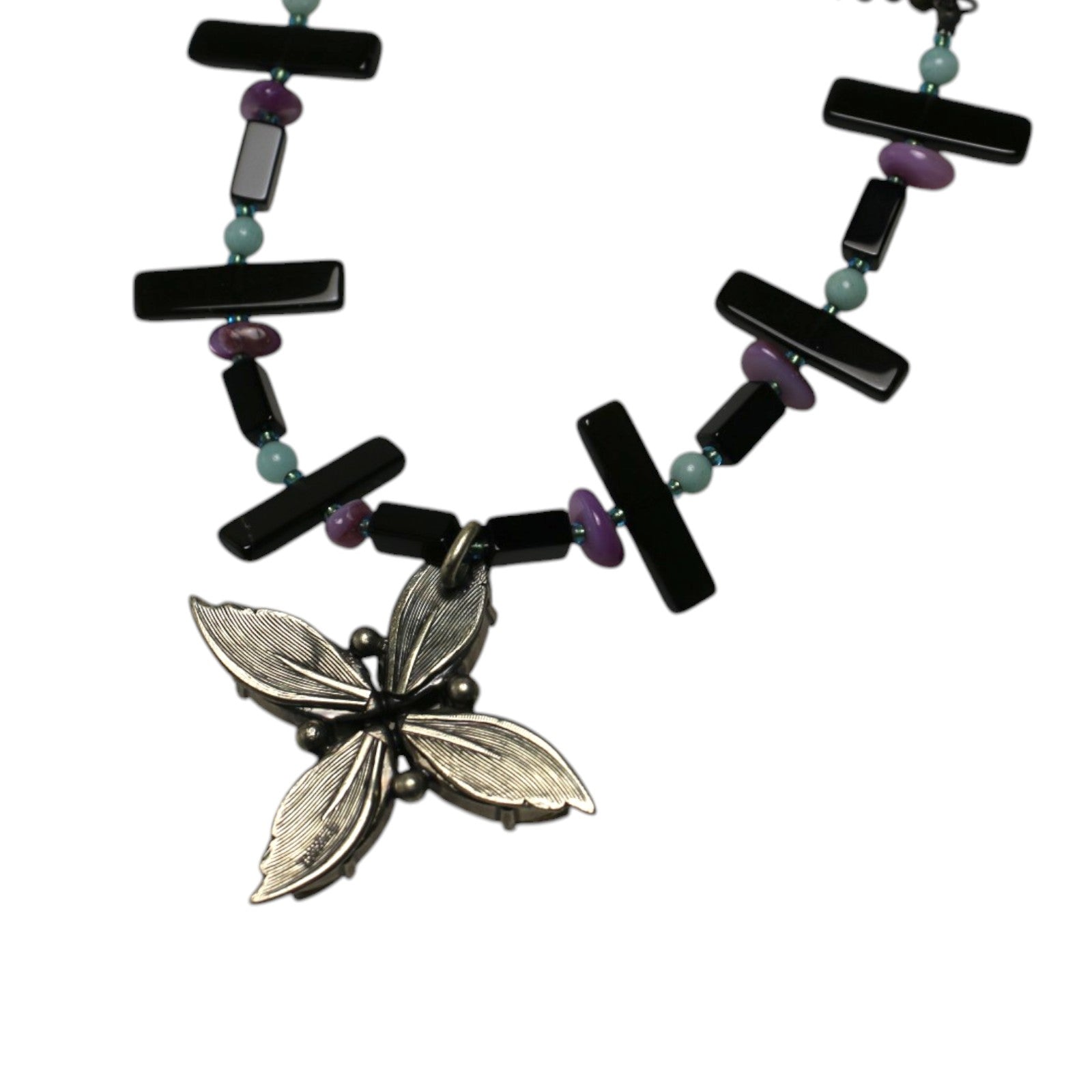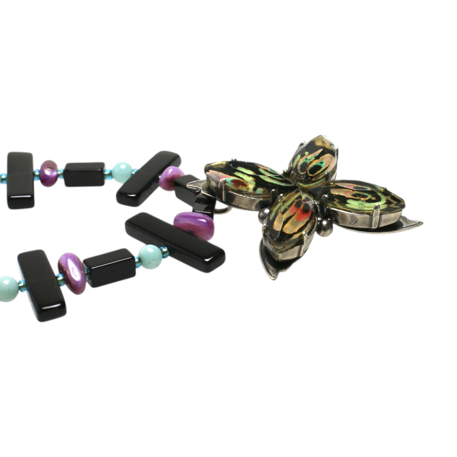 It is a necklace using the resin parts from the "Dororon Series" (Black) . The indescribable pattern blends with the black onyx to create a design that brings out the charm of adults. Enjoy it with a black top. This jewelry is also recommended as a gift.