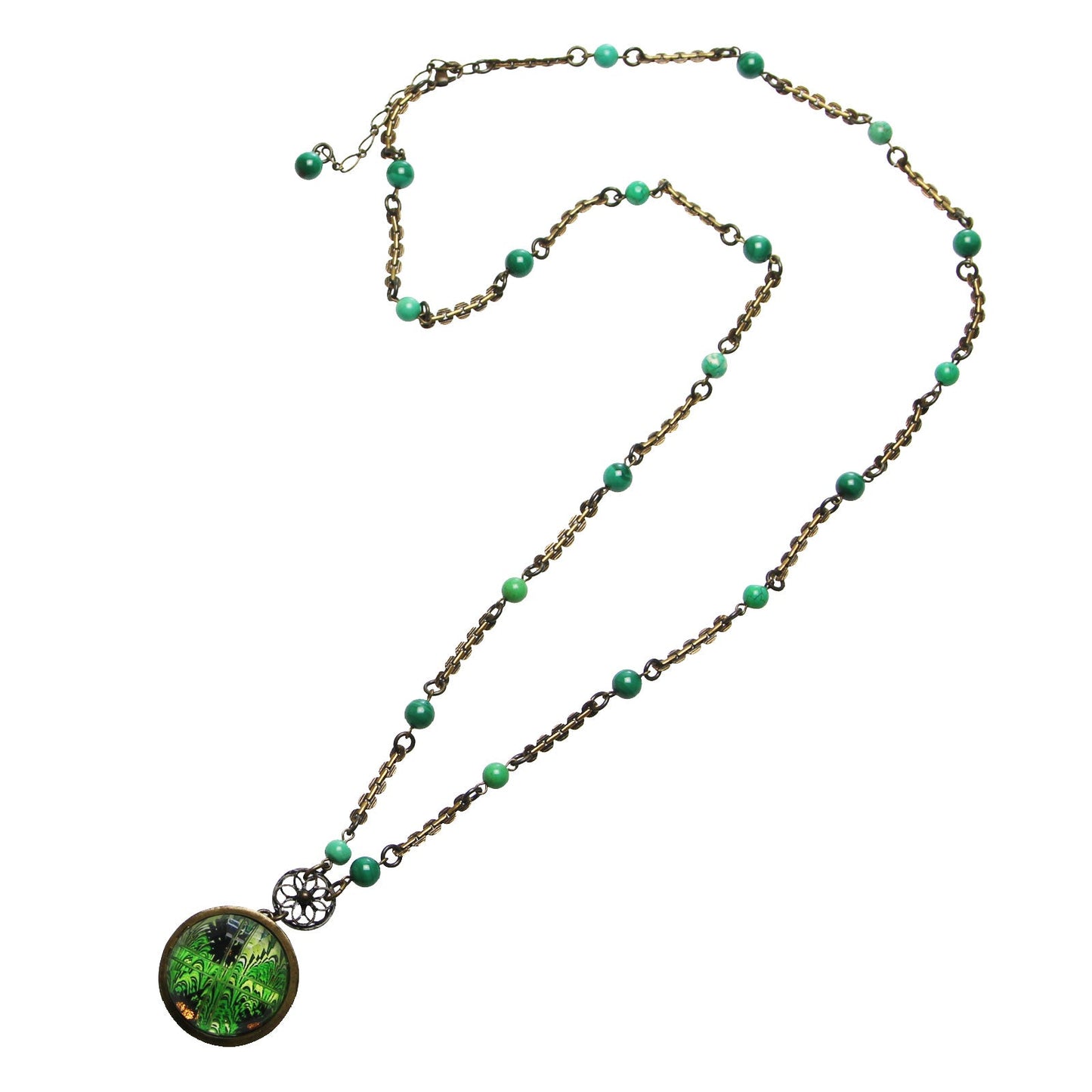 Long Necklace Turquoise Green Marble