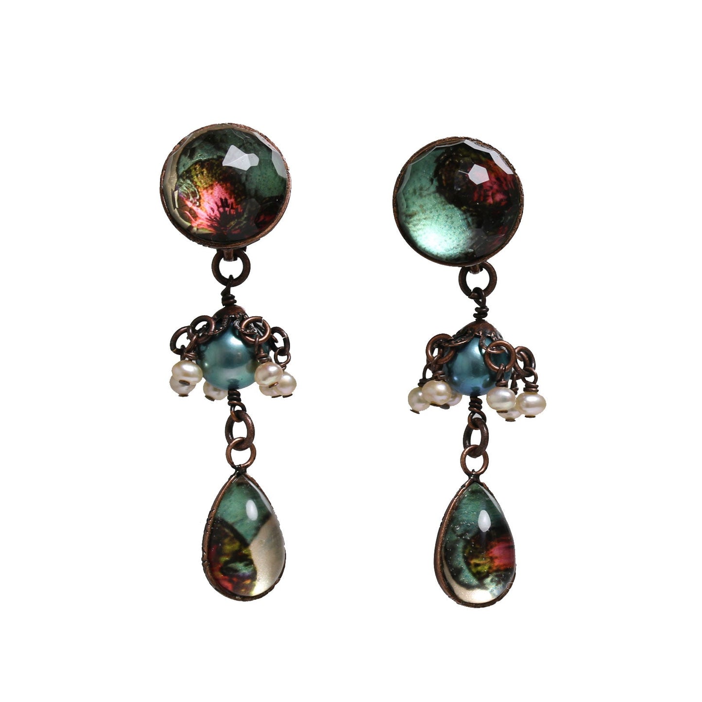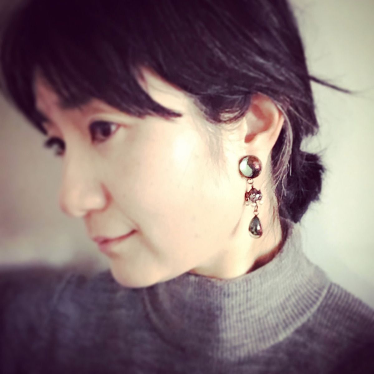 It is luxurious earrings from "Pansy Series" (Bordeaux) made from resin. The shiny main parts go well with freshwater pearls. It is good for formal occasions. It also has a good style that each part has a different design. It is a design that you can enjoy just by watching it.
