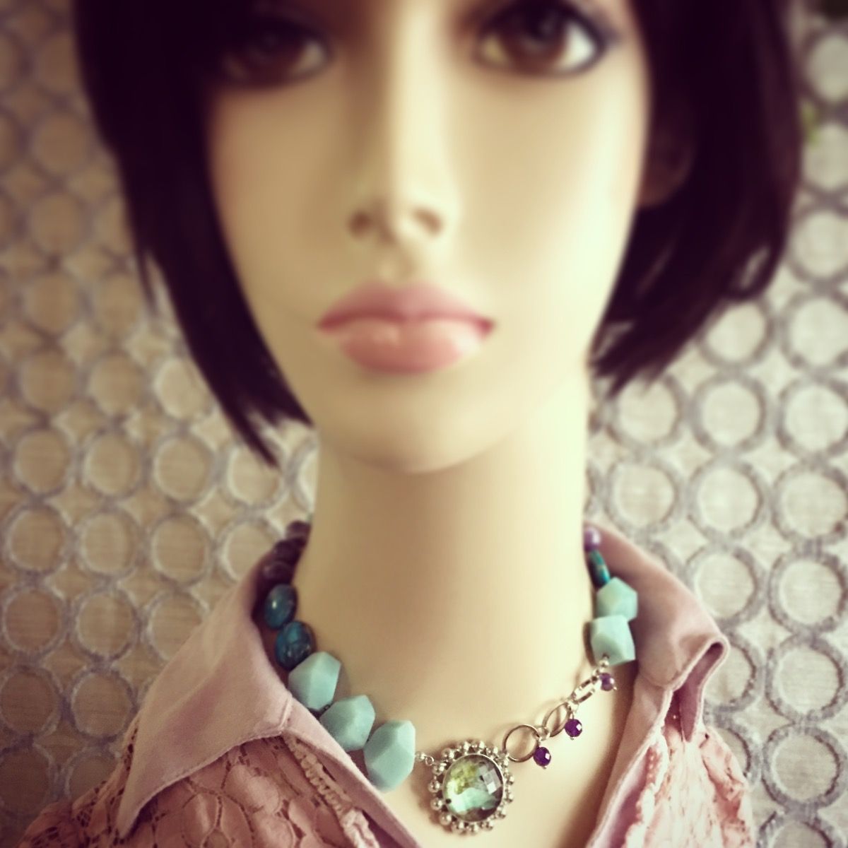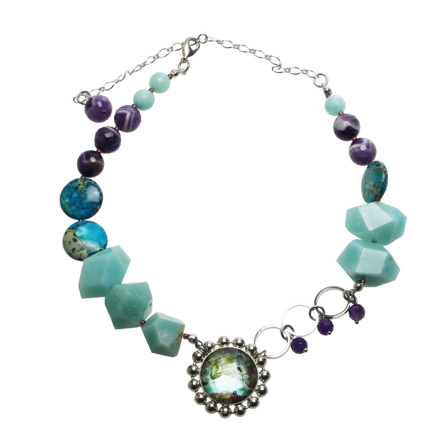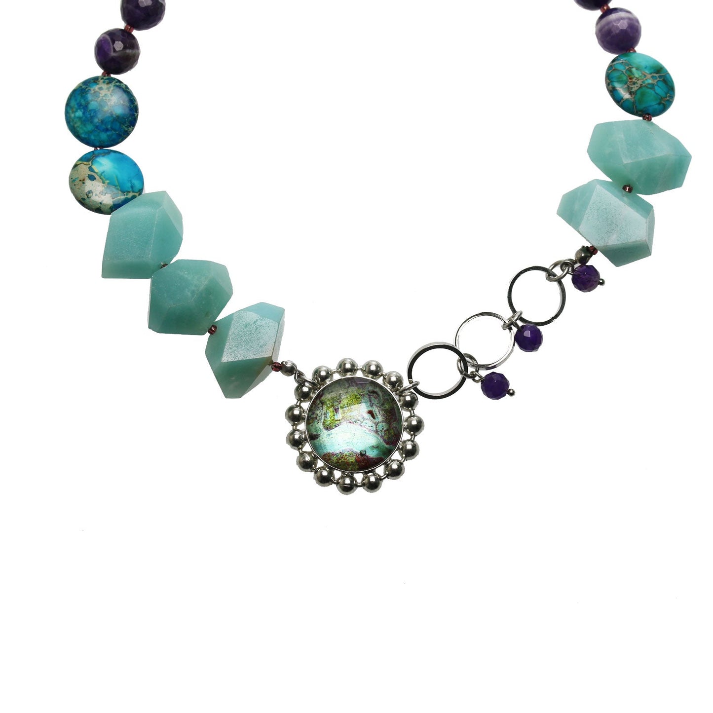 Natural Stone Choker Amazonite Blue Amethyst Impression Stone