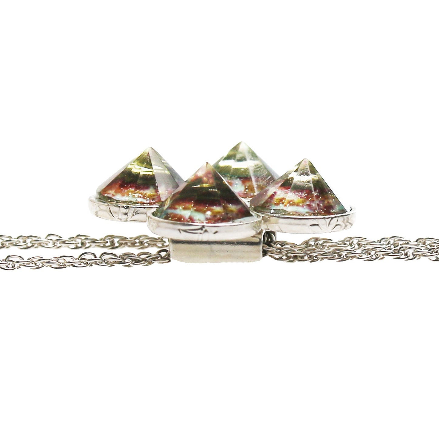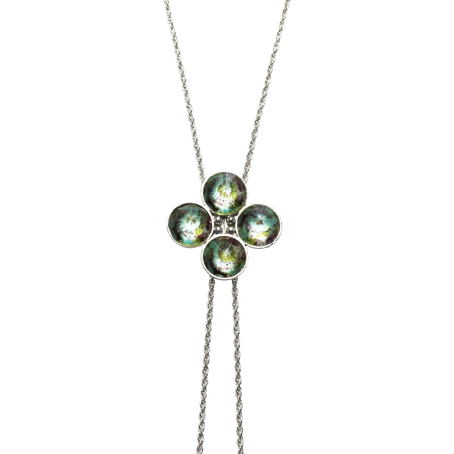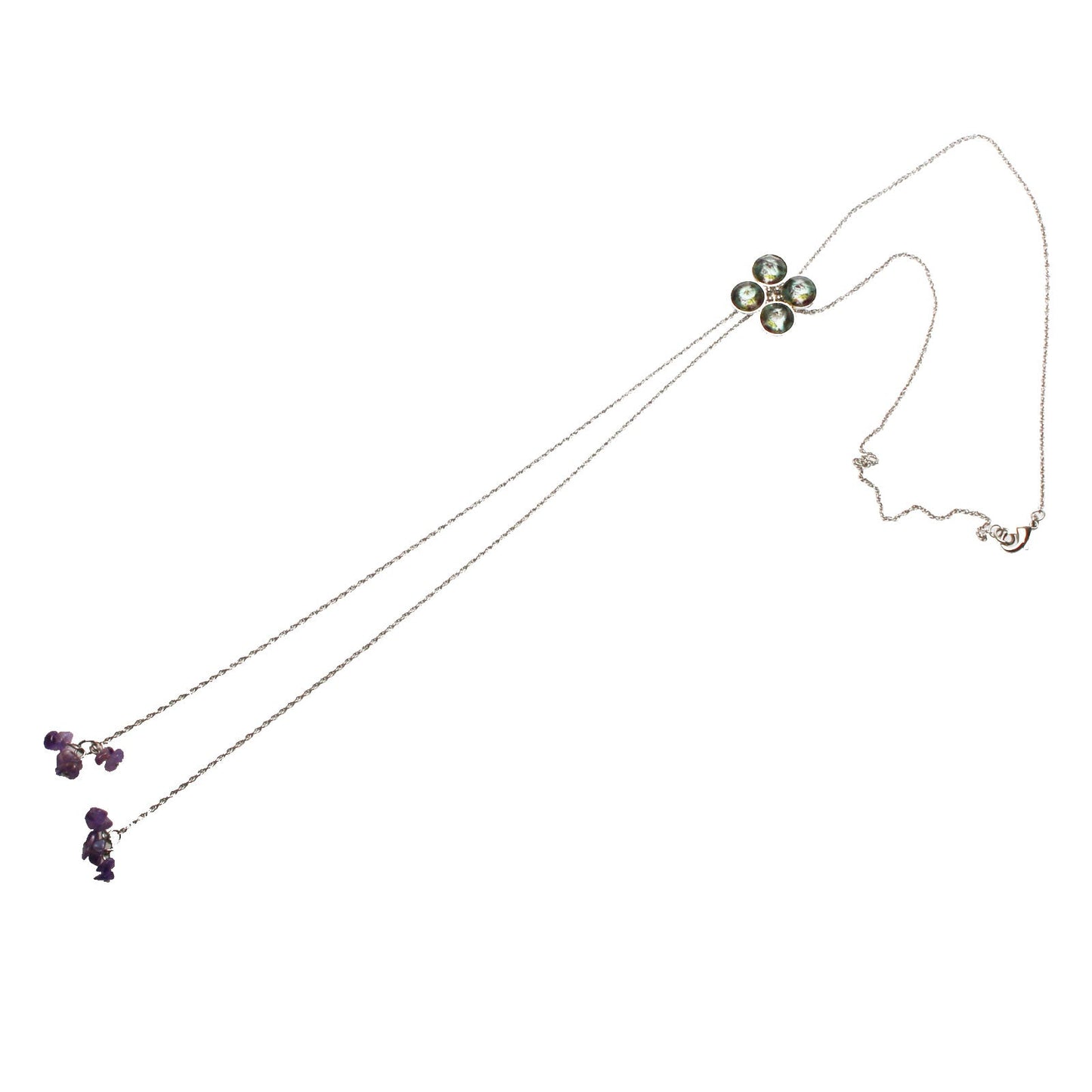 It is a necklace bolo tie using Apollo type resin parts of "Amazon Series" (Blue). It is a unique design that the amethyst shakes ahead of the chain. Just a simple looking accent.