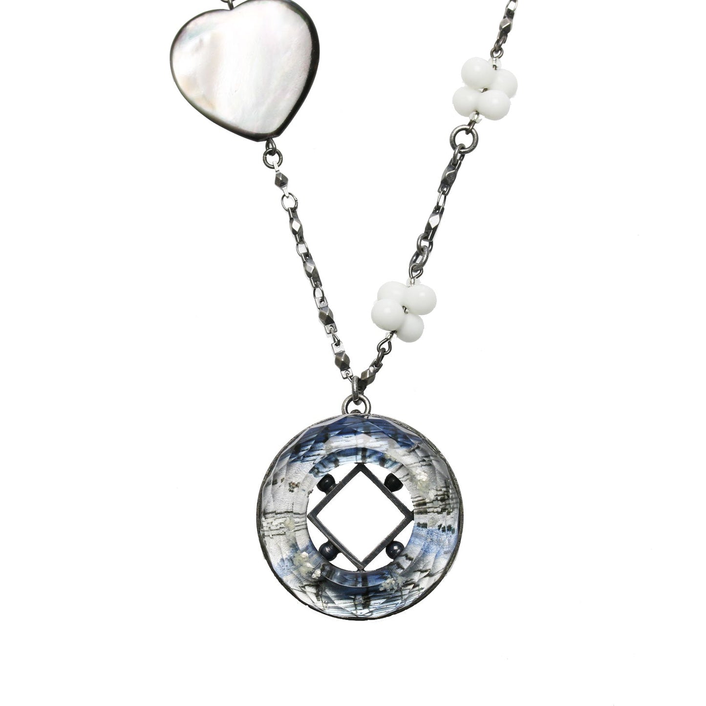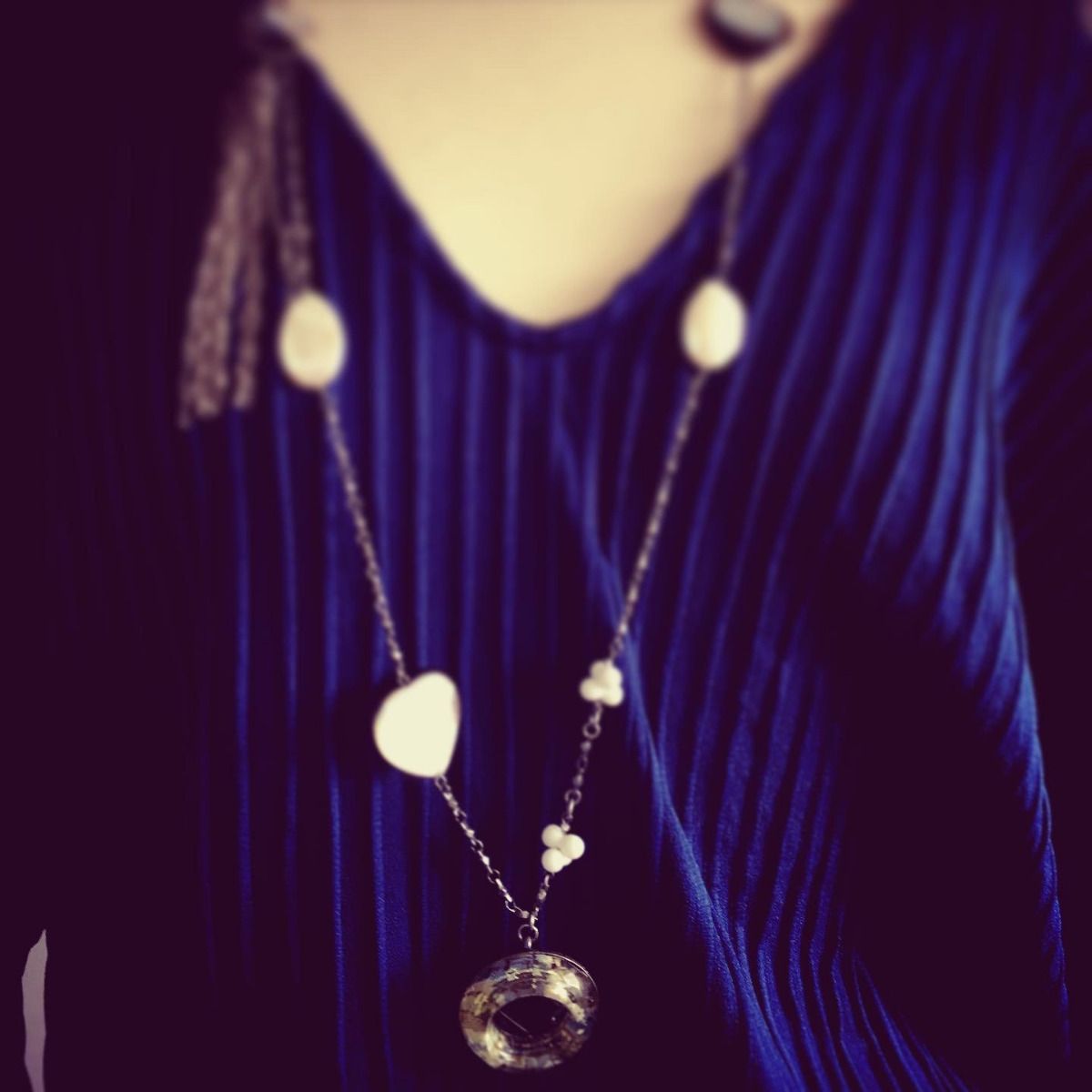 It is a long necklace combining "Musical Note Series" (Blue). We combined shell, freshwater pearl, onyx, crystal, agate according to the color of resin. You can adjust the length with the ribbon. Recommended for simple attire fashionable accents. Resin parts and metal parts are handmade. This product is made intentionally so that silver or gold powder is put in the resin as a design and the musical note is not seen well. Because I cut the part of the note randomly, it may become a slightly different hue from the photograph.
