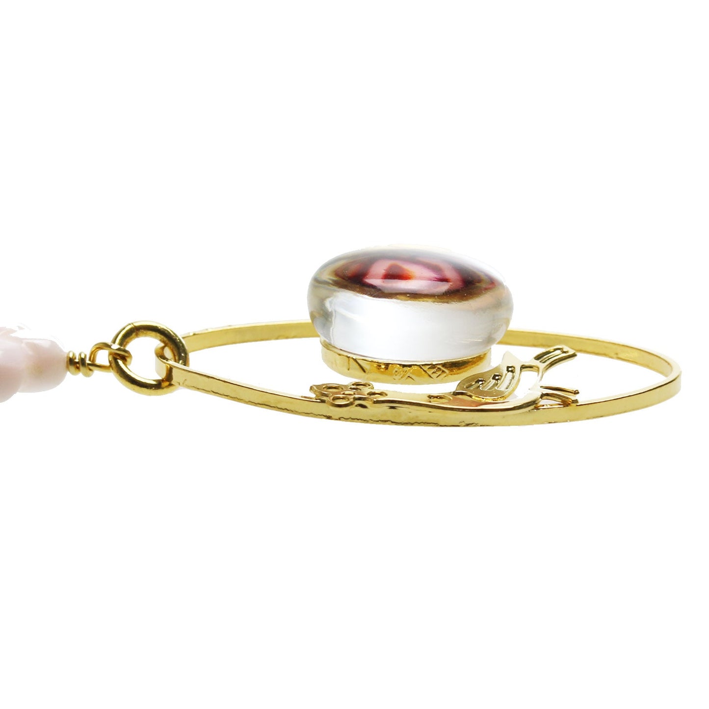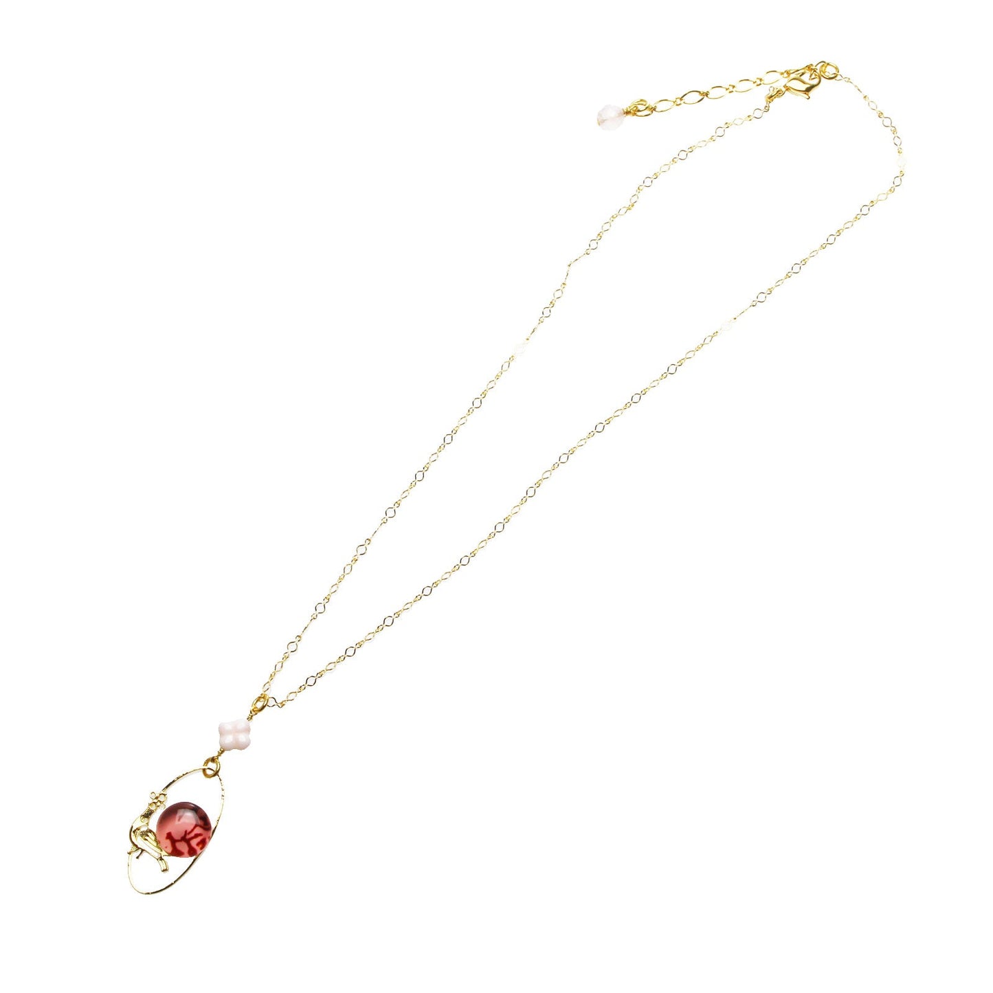 It is a necklace using resin parts of "Oxblood Coral Series". We combined a pink shell to match the color of the resin. It is decorated with birds. Recommended for casual accent of the chest. we attached rose quartz to the adjuster.